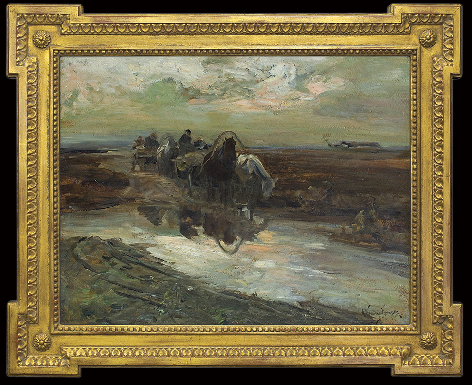 Alfred Wierusz-Kowalski (Suwałki 1849 – Monachium 1915) - jeden z najwybitniejszych polskich malarzy tzw. szkoły monachijskiej był, obok Józefa Brandta i Władysława Czachórskiego, także najpopularniejszym z polskich artystów osiadłych i stale działających w Monachium. Zamieszkał tam w roku 1873, już po studiach w Warszawie i w Dreźnie. Przez rok uczył się jeszcze w monachijskiej Akademii Sztuk Pięknych pod kierunkiem Alexandra Wagnera, a następnie przeniósł się do prywatnej pracowni Brandta. Uznanie krytyki i publiczności zdobył wcześnie; jego obrazy, odznaczane medalami na wystawach były rozchwytywane przez kolekcjonerów i niemieckich handlarzy. W roku 1890 został honorowym profesorem Akademii monachijskiej. Malował sceny rodzajowe i rodzajowo-historyczne z motywami jeźdźców, rycerzy, myśliwych, koni, wilków i śniegów. Po podróży do Afryki w roku 1903 podejmował też tematy orientalne. W polskich zbiorach muzealnych znalazło się stosunkowo niewiele prac artysty – jego obrazy sprzedawane głównie na rynku niemieckim w większej liczbie trafiały do kolekcji prywatnych, głównie w Niemczech i Stanach Zjednoczonych. Obecne często pojawiają się i na polskim rynku sztuki, zawsze budząc zainteresowanie kolekcjonerów.