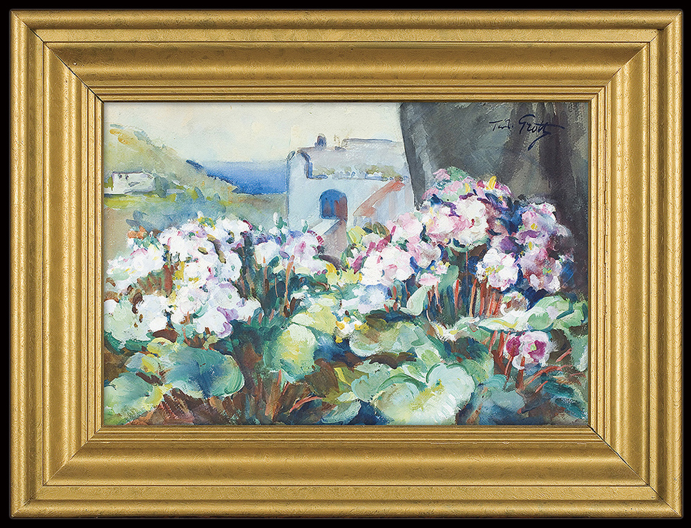 Teodor Grott (Częstochowa 1884 - Kraków 1972) - w latach 1903-1909 studiował w krakowskiej Akademii Sztuk Pięknych początkowo pod kierunkiem Floriana Cynka, później u Leona Wyczółkowskiego. W czasie studiów kilkakrotnie otrzymał medale za prace szkolne. Następnie kształcił się jeszcze w Paryżu, skąd wyjeżdżał do Brukseli i Londynu i podróżował do Włoch. Stale mieszkał w Krakowie, gdzie – począwszy od roku 1910 – wiele wystawiał w Towarzystwie Przyjaciół Sztuk Pięknych. Z czasem został członkiem honorowym Towarzystwa; od 1949 kierownikiem biura i organizatorem wystaw. Od roku 1912 należał także do Towarzystwa Artystów Polskich Sztuka. Malował pejzaże (m.in. tatrzańskie, z Ukrainy, Włoch, Francji), starą architekturę, kwiaty i martwe natury, portrety, akty. Najchętniej posługiwał się doskonale opanowaną techniką akwareli, ale malował także olejno. Zajmował się rzemiosłem artystycznym; wraz z żoną założył i prowadził w Krakowie wytwórnię kilimów.