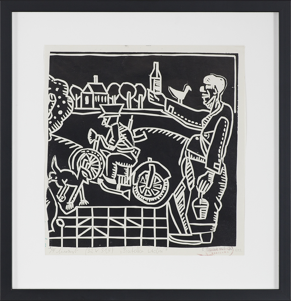 Edward Dwurnik (Radzymin 19 IV 1943 - Warszawa 28 X 2018) studiował malarstwo w ASP w Warszawie (1963-1970), jednak jako swego „mistrza“ wymienia Nikifora. Jego to prace, zobaczone po raz pierwszy w 1965, zainspirowały ówczesnego studenta III roku do narysowania pierwszych prac z cyklu „Podróże autostopem“, które kontynuował w nastepnych latach. W 1972-1978 powstawał cykl „Sportowcy“, w którym portretowane były, dodajmy - kąśliwie, typowe postaci z lat 70. Równolegle od 1975 powstawał cykl „Robotnicy“, który kulminował w okresie „Solidarności“ 1980-1981. Za prace z tego cyklu Dwurnik otrzymał w 1981 Nagrodę Krytyki Artystycznej im. Cypriana Kamila Norwida, natomiast za obrazy z cyklu „Warszawa“ (1981), proroczo zapowiadające stan wojenny - Nagrodę Kulturalną „Solidarności“ podziemnej w 1983. W latach 80. malarstwo Dwurnika przybrało wyraz ekspresyjny i dramatyczny. Powstające w tej dekadzie obrazy miały niejednokrotnie wymowę polityczną, przybierały też kostium historyczny, tak czy inaczej odnoszący się do współczesnych spraw i realiów. Cykl „Droga na Wschód“ (1989-91) upamiętniał ofiary stalinizmu, natomiast cykl „Od Grudnia do Czerwca“ (1990-94) - ofiary stanu wojennego. Zarówno ideowe, jak i czysto malarskie walory tych prac przyniosły artyście ogromne uznanie, zarówno w kraju jak i za granicą. Jego wyrazem była prestiżowa nagroda Fundacji Coutts & Co w Zurychu (1992). W latach 90. powstają cykle będące kontynuacją „Podróży autostopem“: „Niebieskie miasta“ (od 1993) i „Diagonale“ (od 1996), jak również kompozycje nowego typu, jak widoki morskie (cykl „Błękitne“, 1992-93) czy cykl „Wyliczanka“ (1996-99). Artysta wiele wystawia, miał ok. 100 wystaw indywidualnych w Polsce i za granicą, brał też udział w licznych wystawach i festiwalach krajowych i międzynarodowych, m.in.: X Biennale Sztuki Współczesnej, Menton 1974, Documenta 7, Kassel 1982, 5th Biennale, Sydney 1985, XIX Biennale Sztuki, Sao Paulo 1987; Olimpiada Sztuki, Seul 1988. Równolegle z malarstwem uprawiał rysunek, collage, grafikę warsztatową (litografia, techniki metalowe, kserografia, stemple) i użytkową (ilustracja, plakaty do własnych wystaw indywidualnych).