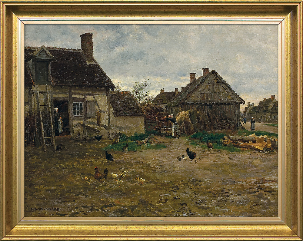 Marie-François Firmin Girard (Poncin /departament Ain w regionie Rodany i Alp/ 1838 – Montluçon /departament Allier w Owernii/ 1921) – francuski malarz akademicki, sygnujący swe prace Firmin-Girard był jednym z bardziej znanych i cenionych artystów swojej epoki. Studia malarskie rozpoczął w 1854 w paryskiej École des Beaux-Arts, jako uczeń Charles’a Gleyere’a i Léona Gérôme’a. W 1859 debiutował na oficjalnym Salonie, pokazując obraz "Święty Sebastian". W 1861 otrzymał medal 3. klasy i drugą nagrodę w konkursie Prix de Rome za "Śmierć Priama". Odtąd wystawiał regularnie; do roku 1881 biorąc udział w dorocznych Salonach Société des Artistes François, a w latach 1890-1914 Société Nationale des Beaux-Arts. Na Salonie w 1863 olbrzymi sukces odniósł jego obraz "Po balu"; odznaczone medalem płótno zakupiła księżna Matylda Bonaparte. Od tego czasu artysta, obok obrazów o tematach historycznych, religijnych czy mitologicznych ("Ulisses i Syreny"), malował coraz więcej współczesnych scen z życia mieszczaństwa, z ulic Paryża i małych miasteczek francuskich ("Na tarasie", "Narzeczeni", "Rekonwalescenci", "Sprzedawczyni kwiatów"), a niekiedy też rodzajowe przedstawienia w kostiumach z XVIII wieku. Malował ponadto obrazy o motywach orientalnych, m.in. modne wówczas tematy japońskie ("Toaleta japońska") czy sceny haremowe ("Odaliska"). Z równą łatwością tworzył też miejskie weduty ze sztafażem ("Paryż wiosną", "Nabrzeże w kwiatach"), pejzaże oraz obrazy przedstawiające realia życia wieśniaków i rybaków – ubogie gospodarstwa, zagrody, podwórka ("Le Moulin de Gatellier", "Le Fuerage des boeufs"). Od 1875 często bywał w Onival (dziś dzielnica Ault) nad kanałem La Manche, miał tam dom i gdzie wiele malował (pejzaże, sceny rodzajowe). Zasadniczo realistyczne malarstwo artysty z czasem wykazuje też wpływy impresjonistów; w swoich pracach Girard zawsze wielką wagę przykładał do roli światła. Jego obrazy pokazywane na Salonach i innych wystawach jeszcze kilkakrotnie odznaczono medalami, m.in. w 1874 artysta otrzymał medal 2. klasy, a w 1900 na Wystawie Światowej w Paryżu medal brązowy. W latach 1895, 1896, 1900, 1901 Girard uczestniczył też w Wielkich Wystawach Sztuki w Berlinie. W uznaniu zasług dla francuskiej sztuki w roku 1896 otrzymał order Legii Honorowej. Prace artysty znajdują się, m.in. w Musée d’Orsay w Paryżu, a także w muzeach w Bougres, Mayenne, Helfingfors, w Metropolitan Museum of Art w Nowym Jorku oraz w Art Institute w Chicago.