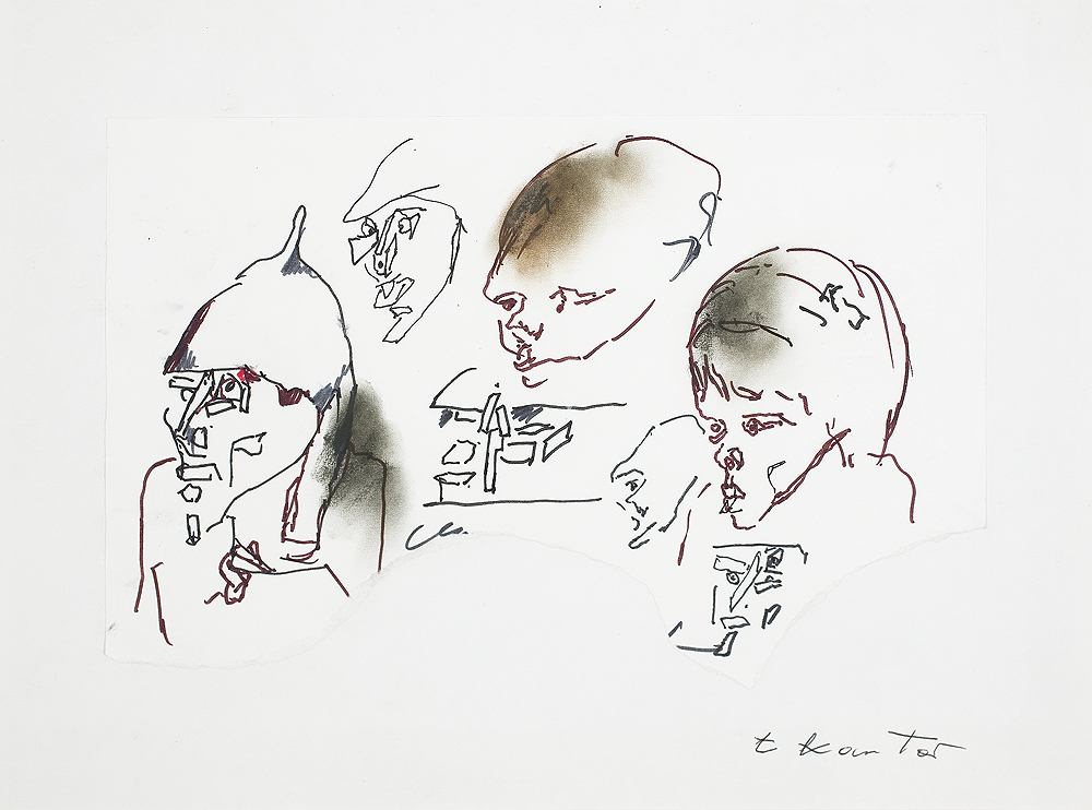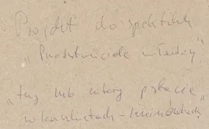 Tadeusz Kantor (Wielopole Skrzyńskie 1915 - Kraków 1990) studiował scenografię w ASP w Krakowie w latach 1934-1939. W 1942 założył Teatr Podziemny, który działał do 1944, dając dwa spektakle: "Balladynę" i "Powrót Odysa". W trakcie prac nad spektaklami zawiązało się grono artystów, którzy w 1945 utworzyli pod wodzą Kantora „Grupę Młodych Plastyków“. Ta z kolei stała się zalążkiem zarówno eksperymentalnego teatru Cricot 2 (utworzonego w 1955), jak i drugiej „Grupy Krakowskiej“ (utworzonej w 1957). W 1947 Kantor przebywał na rocznym stypendium w Paryżu, po powrocie był jednym z organizatorów I Wystawy Sztuki Nowoczesnej, Kraków 1948/49. W latach 1950-1954 nie uczestniczył w wystawach. Od 1955 jego twórczość biegła dwutorowo. Z jednej strony działał jako malarz, twórca „ambalaży“, od 1965 happeningów, z drugiej - poświęcał się pracy nad kolejnymi spektaklami Cricot 2, z których każdy był wydarzeniem artystycznym, zwłaszcza od lat 70.: "Umarła klasa" (premiera 1975), "Wielopole, Wielopole" (1980), "Niech sczezną artyści" (1985), "Nigdy tu już nie powrócę" (1988); zmarł po ostatniej próbie spektaklu "Dzisiaj są moje urodziny" (premiera 1991). Współpracował stale z galeriami: Krzysztofory w Krakowie (gdzie również miał siedzibę teatr Cricot 2) i Foksal w Warszawie. Od 1979 wraz z teatrem Cricot 2 przebywał głównie we Florencji. Był teoretykiem sztuki i teatru, autorem wielu manifestów. Uczestniczył w wystawach miedzynarodowych najwyższej rangi, jak Documenta w Kassel (1959, 1965), Biennale w Wenecji (1960), Biennale w Sao Paulo (1967). Otrzymał m.in. Prix Rembrandt Fundacji Goethego, Bazylea 1978, Medal „Arts et Lettres“ Ministra Kultury Francji 1982, nagrodę Fundacji im. Alfreda Jurzykowskiego, Nowy Jork 1982 i wiele nagród teatralnych.