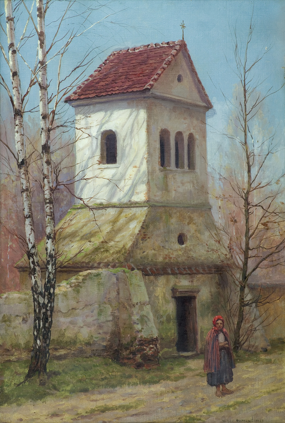 Józef Rapacki (Warszawa 1871 – Olszanka k. Skierniewic 1929) nazywany „malarzem brzóz i liliowych wrzosów“, był jednym z najpopularniejszych pejzażystów warszawskich końca XIX i pierwszej ćwierci XX wieku. Edukację malarską rozpoczął jako uczeń Wojciecha Gersona w Warszawskiej Klasie Rysunkowej. Później studiował jeszcze w Szkole Sztuk Pięknych w Krakowie pod kierunkiem Floriana Cynka (1886-1887) oraz w Monachium w prywatnej szkole Friedricha Fehra (1888-1889). Po studiach kilkakrotnie podróżował do Włoch. Brał udział w licznych wystawach w TZSP w Warszawie oraz we Lwowie (1894 srebrny medal), Krakowie, Wilnie, Kielcach. Wystawiał też za granicą - w Berlinie (1893) czy w Paryżu, gdzie w 1900 został odznaczony dyplomem na Powszechnej Wystawie Światowej. Należał do grupy „Pro Arte“. Od roku 1907 stale mieszkał w Olszance, wiosce na skraju Puszczy Mariańskiej, niedaleko Skierniewic. Malował przede wszystkim realistyczne, nastrojowe pejzaże oraz rozgrywające się w pejzażu sceny rodzajowe, a także portrety i wnętrza. Uprawiał grafikę (teki Z dawnej i niedawnej Warszawy oraz Pro memoria. Prusak w Polsce), zajmował się ilustratorstwem książkowym, współpracował z warszawskimi czasopismami, m.in. „Tygodnikiem Ilustrowanym“, „Wędrowcem“ „Światem“, „Biesiadą Literacką“.