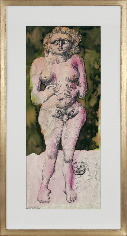 Jan Lebenstein (Brześć Litewski 1930 - Kraków 1999) w latach 1948-1954 studiował malarstwo w ASP w Warszawie pod kierunkiem prof. Eugeniusza Eibischa i Artura Nachta-Samborskiego. W 1955 wziął udział w wystawie w warszawskim Arsenale. Zaprzyjaźniony w czasie studiów z Mironem Białoszewskim, swą pierwszą wystawę indywidualną pokazał w 1956 w Teatrze na Tarczyńskiej. W 1959 zdobył Grand Prix de la Ville de Paris na I Biennale Młodych w Paryżu i w tym roku przeniósł się na stałe do Paryża. Po seriach "figur kreślonych" (na papierze milimetrowym) i "figur hieratycznych" z lat 1955-1958 maluje cykl "figur osiowych" (1958-1962), które wystawia w Paryżu i USA. Równolegle w 1960 zaczyna rysowane "karnety", rodzaj dziennika, który w przyszłości dostarczy motywów wykorzystanych w obrazach. W latach 1964-1965 maluje "Bestiarium", cykl fakturowych, archaizowanych stworów przypominających prehistoryczne wykopaliska. Bezpośrednio po nich wprowadza do swych obrazów postaci ludzkie i fantastyczne, odgrywające sceny ni to mitologiczne, ni to ze snu, często przesycone erotyką. W 1970 projektuje witraże dla Centre du Dialogue w Paryżu. W W 1971 otrzymuje obywatelstwo francuskie 1974 powstają gwasze inspirowane Folwarkiem zwierzęcym George'a Orwella. W latach 1976-1989 tworzy wyłącznie w technice gwaszu i pastelu, podejmując tematykę mitologiczną i zaczerpniętą z Biblii: cykle ilustracji do Księgi Hioba (wyd. 1979) i do Apokalipsy (wyd. 1986) w nowych przekładach Czesława Miłosza. W 1989 powraca do malarstwa olejnego (cykl "Pergamon"). Artysta otrzymał m. in. nagrodę Fundacji im. Alfreda Jurzykowskiego w 1976, Nagrodę Muzeum Archidiecezji Warszawskiej w 1985, Nagrodę im. Jana Cybisa w 1987.