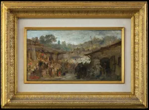 Józef Brandt (Szczebrzeszyn 1841 - Radom 1915) był jednym z najwybitniejszym polskich malarzy batalistów. Naukę malarstwa rozpoczął w Warszawie pod okiem Juliusza Kossaka. W latach 1858-1860 był w Paryżu, gdzie podjął studia inżynierskie. Niebawem zarzucił je jednak na rzecz malarstwa i kształcił się w pracowni Leona Cognieta. Po powrocie do kraju, w 1861 debiutował na wystawie w warszawskim TZSP. Od 1863 kontynuował studia w monachijskiej ASP u Franza Adama. W 1870 otworzył w Monachium własną pracownie i niebawem stał się przywódcą, „generałem” tamtejszej polskiej kolonii artystycznej i nauczycielem wielu malarzy. Po 1877 miesiące letnie spędzał w Orońsku, zapraszając na plenery grono swych uczniów. Został honorowym profesorem Akademii w Monachium (1878), członkiem Akademii w Berlinie (1877) i Pradze (1900). Odznaczony wysokimi orderami, wyróżniany medalami i nagrodami na międzynarodowych wystawach, cieszył się prawdziwie europejską sławą. Mieszkając i tworząc poza krajem zawsze wyraźnie podkreślał swoją polskość; dając jej wyraz choćby poprzez podpisywanie obrazów Józef Brandt z Warszawy. Malował bitwy, potyczki, podjazdy – epizody z historii polskich wojen kresowych i wojen szwedzkich XVII wieku, a także sceny rodzajowe – jeźdźców, polowania, jarmarki. Jego barwne, pełne ruchu i perfekcyjne warsztatowo obrazy podziwiano powszechnie, jako najlepszy przykład wysoko wówczas cenionej „szkoły polskiej”. Ale podczas gdy niemiecki czy francuski widz dostrzegał w nich przede wszystkim egzotykę i barwy Orientu, dla Polaków były to płótna „prawdziwe, naturalne, swojskie jak fragmenty z pamiętników Paska albo Rzewuskiego, przetransponowane na barwy i linie”. |