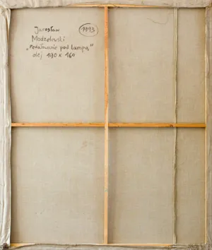 Jarosław Modzelewski (Warszawa 1955, mieszka w Warszawie) studiował malarstwo w ASP w Warszawie w latach 1975-1980, uzyskując dyplom w pracowni Stefana Gierowskiego. Od 1982 pracuje jako pedagog na macierzystym wydziale. W 1982 był współzałożycielem „Gruppy”, najważniejszego ugrupowania nurtu nowej ekspresji lat 80., działającego do 1992. W latach 1991-1996 wspólnie z Markiem Sobczykiem prowadził prywatną Szkołę Sztuki w Warszawie. Od wielu lat współpracuje z Galerią Zderzak w Krakowie. W początkowym okresie twórczości skłaniał się ku abstrakcji, wykorzystywał uproszczone znaki i emblematy oraz sylwetki odbite z szablonu. W 1985 namalował cykl oparty na ilustracjach do podręczników języka rosyjskiego, obrazujący proste czynności, których czasownikowe określenia stanowią tytuły prac. W 1986-1989 powstawały obrazy utrzymane w konwencji realistycznej, jednak zarazem o surrealnej atmosferze uzyskiwanej różnymi metodami, np. przez dublowanie figur, ukazywanie postaci w sytuacji niepewności czy zagrożenia, zabiegi z przestrzenią. W grupie obrazów z 1988 artysta rezygnuje z postaci ludzkiej na rzecz wyjątkowego nasycenia emocją samej przestrzeni pejzaży i wnętrz. Około 1990 wraca do kompozycji akcentujących czynności wykonywane przez postaci, które często umieszczone są w pustej, zaledwie zasugerowanej, acz dominującej przestrzeni. Odrealnienia i monumentalności dodaje tym obrazom płaskie i rozległe kładzenie koloru.