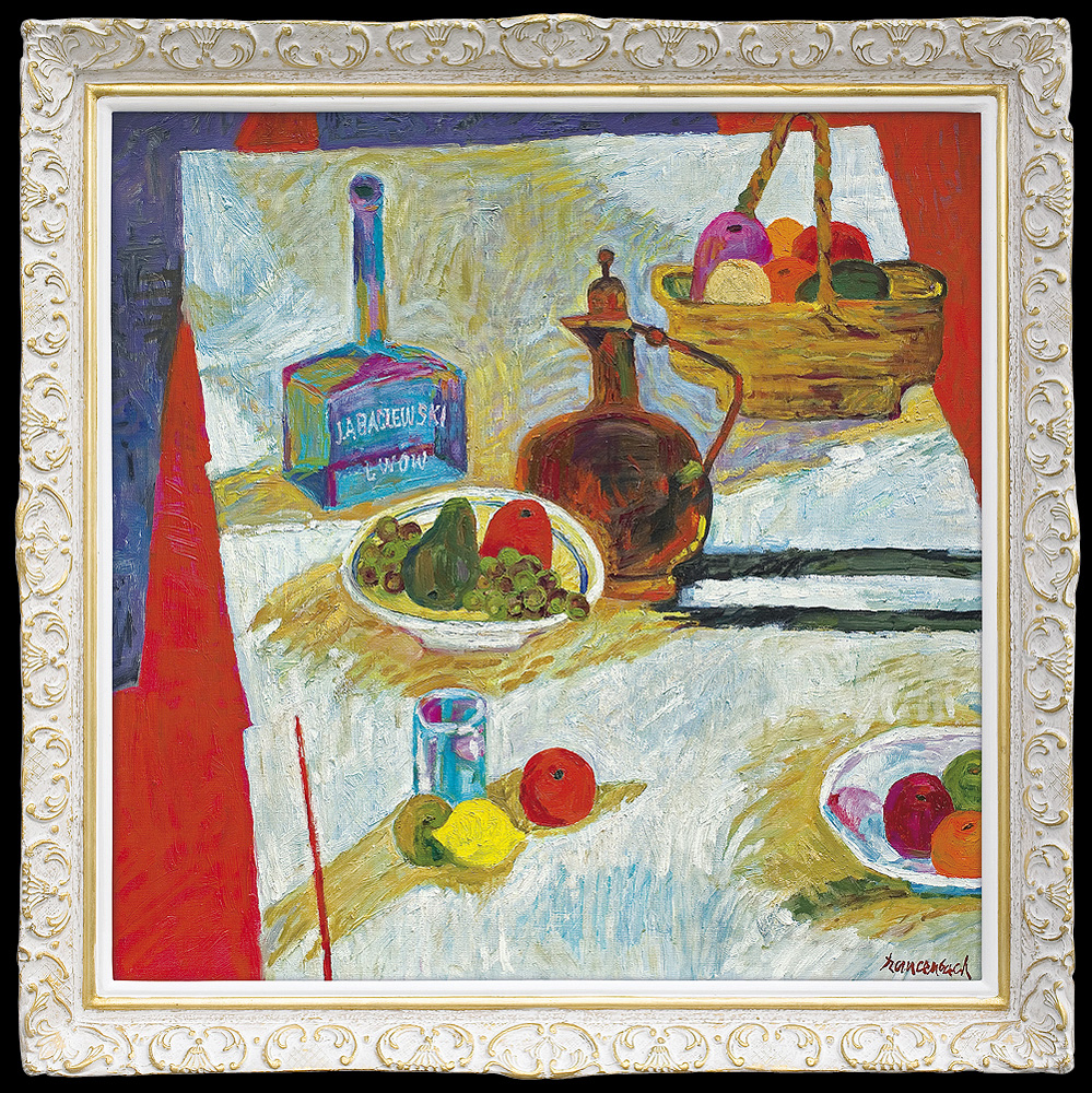 Jan Szancenbach (Kraków 1928 - Kraków 1998) studiował w latach 1940-1942 w Kunstgewerbeschule (czyli ASP zdegradowanej przez okupanta do roli szkoły zawodowej) pod kierunkiem m.in. Stanisława Kamockiego, Józefa Mehoffera, Andrzeja Jurkiewicza. Po zamknięciu uczelni, w latach 1942-1945 pracował zarobkowo i samodzielnie studiował. W 1945 został przyjęty ponownie na II rok studiów, które ukończył pod kierunkiem Eugeniusza Eibischa w 1948 (dyplom uzyskał w 1952). Od 1948 pracował jako asystent w macierzystej pracowni oraz w pracowni liternictwa i projektowania graficznego Ludwika Gardowskiego. Przeszedł wszystkie szczeble kariery akademickiej, od asystenta do profesora zwyczajnego (od 1986). Od 1972 prowadził własną katedrę na Wydziale Malarstwa. W latach 1987-1993 przez dwie kadencje był rektorem ASP w Krakowie. Jako malarz pozostawał wierny szkole koloryzmu polskiego, którego zasady przyswoił sobie w trakcie studiów u Eibischa. Jego malarstwo jest pełne światła i nasyconych barw, radosne, wręcz feeryczne. Obok wybitnych walorów kolorystycznych (zwłaszcza w czerwieniach malarz osiągał niezwykłą skalę odmian i odcieni) nie stroni od dekoratywizmu, co razem składa się na hedonistyczny, beztroski wyraz. Znany przede wszystkim jako twórca martwych natur, pejzaży, scen w ogrodach, Szancenbach zajmował się również malarstwem monumentalnym. Pracował m. in. przy renowacji Teatru im. Słowackiego w Krakowie oraz widowni i plafonu Opery we Wrocławiu. Innym wątkiem jego sztuki było projektowanie graficzne (znaki firmowe, plakaty, okładki, opakowania, etykiety, znaczki pocztowe itp.), zajmował się również ilustracją książkową i filmem rysunkowym.