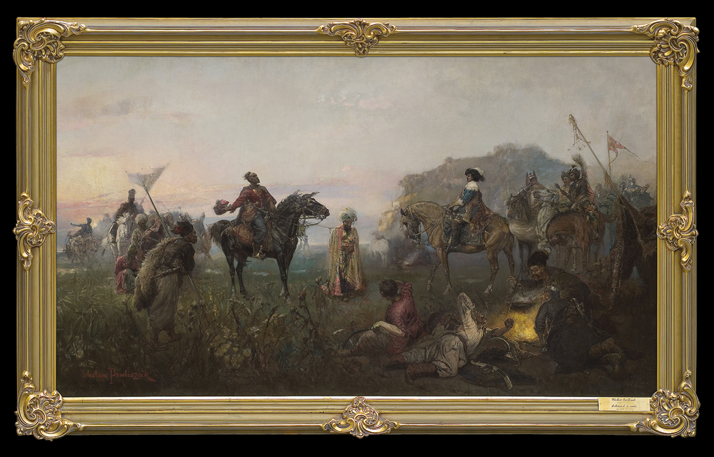 Wacław Pawliszak (Warszawa 1866 - Warszawa 1905) - malarz, rysownik, ilustrator; już jako dziecko wykazywał niezwykłe zdolności do rysunku; wcześnie też rozpoczął naukę - najpierw u Wojciecha Gersona w warszawskiej Klasie Rysunkowej, a w wieku czternastu lat w Szkole Sztuk Pięknych w Krakowie. Studiował pod kierunkiem Władysława Łuszczkiewicza i Floriana Cynka, był ulubionym uczniem Jana Matejki. Następnie uczył się jeszcze w Monachium u Józefa Brandta (1885) i w Paryżu u A. E. Carolusa-Duran (1886). Stale mieszkał w Warszawie, ale wiele podróżował; był w Rzymie, a przede wszystkim jeździł na Wschód, w którym „rozmiłował się do fanatyzmu„. Podróżował do Algieru, Tunisu, Maroka, Albanii, Dalmacji, Egiptu, Iranu i Iraku, jeździł na Krym i do Konstantynopola, wszędzie znajdując tematy do swych obrazów i z pasją kolekcjonera skupując wschodnie tkaniny i broń. Malował portrety, pejzaże i popularne wówczas „sceny rokokowe„, ale przede wszystkim obrazy historyczne i batalistyczne z dziejów XVII-wiecznych wojen polskich. Wiele wystawiał, tak w kraju jak i za granicą; m.in. w 1889 w Paryżu (brązowy medal za obraz Emir Rzewuski na Wystawie Powszechnej), w 1894 w Chicago i San Francisco, w 1898 w Petersburgu, w 1900 w Paryżu (list pochwalny za Strzelanie do orłów na Wystawie Światowej). Pracował nad Pocztem królów polskich, ilustrował czasopisma i książki, m.in. Pana Tadeusza, Beniowskiego i wiedeńskie wydanie Baśni tysiąca i jednej nocy. Zginął tragicznie, śmiertelnie postrzelony przez Xawerego Dunikowskiego. W polskich zbiorach muzealnych obrazów artysty jest niewiele; większa ich liczba znajduje się w kolekcjach prywatnych.