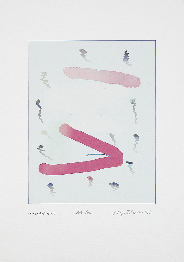 Stanisław Fijałkowski (Zdołbunow na Wołyniu 1922 - Łódź 2020) w latach 1944-1945 przebywał na robotach przymusowych w Królewcu. W latach 1946- 1951 studiował w Państwowej Wyższej Szkole Sztuk Plastycznych w Łodzi pod kierunkiem Władysława Strzemińskiego, Stefana Wegnera i Ludwika Tyrowicza, u którego uzyskał dyplom. W latach 1947-1993 był pedagogiem w macierzystej uczelni, od 1983 profesorem. Pełnił funkcje prorektora i dziekana Wydziału Grafiki. Wykładał też za granicą: w Mons (1978, 1982), Giessen (1989-1990), Marburgu (1990). Jest wiceprezydentem Międzynarodowego Stowarzyszenia Drzeworytników XYLON w Szwajcarii i przewodniczącym Polskiej Sekcji tej organizacji. Należy do zagranicznych Akademii nauk i sztuk w Salzburgu i Brukseli. Jest laureatem Nagrody Krytyki Artystycznej im. Cypriana Norwida 1971, Nagrody im. Jana Cybisa 1990 i wielu innych wyróżnień. Jako pierwszy w Polsce przetłumaczył teksty Wasyla Kandinskiego („Punkt i linia a płaszczyzna” i „O duchowości w sztuce”), oba wydane drukiem, oraz Kazimierza Malewicza „Świat bezprzedmiotowy”. Malarstwo Fijałkowskiego bazuje na skromnym zasobie abstrakcyjnych znaków i ograniczonej gamie barwnej. Kompozycje, w większości sugerujące ujęcia pejzażowe czy szerzej – przestrzenne, budowane są jakby pojedynczymi dotknięciami pędzla. Każdy szczegół nabiera ważności, śledzi się każdy niuans barwy czy faktury. Charakterystyczne kształty i motywy powtarzają się w różnych konfiguracjach w pracach artysty niczym wyrazy, z których układa za każdym razem inną opowieść. Obrazy noszą zazwyczaj poetyckie tytuły, często wpadające w tony groteskowe czy surealistyczne. Cechy te składają się na niezwykłe, intrygujące, autonomiczne zjawisko artystyczne. Malarstwu Fijałkowskiego od początku lat 60. towarzyszy czarno-biała grafika, głównie linoryt i drzeworyt, sporadycznie litografia.