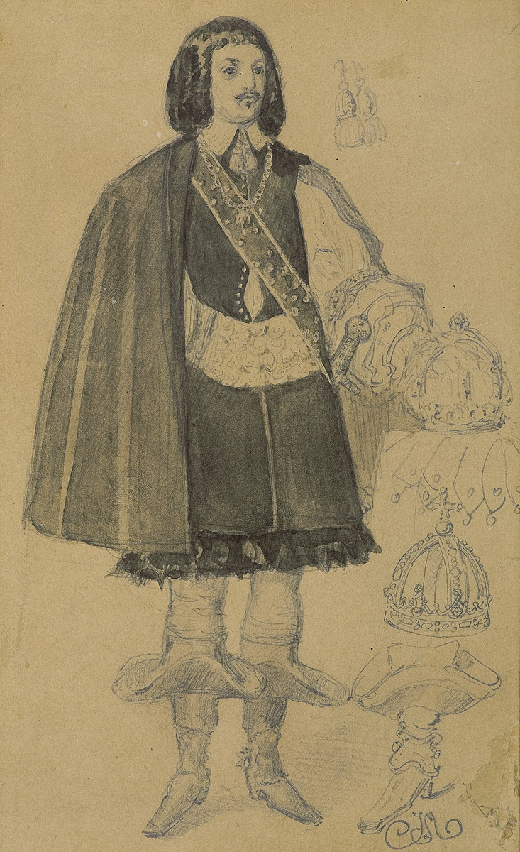 Jan Matejko (Kraków 1838 - Kraków 1893) - najwybitniejszy polski malarz historyczny; studia malarskie rozpoczął pod kierunkiem W. Łuszczkiewicza i W. K. Stattlera w krakowskiej Szkole Sztuk Pięknych (lata 1852-1858). Następnie uczył się w Akademii monachijskiej u H. Anschütza (1859) i przez dwa miesiące w Akademii wiedeńskiej u C. Rubena (1860). Po studiach mieszkał i pracował w Krakowie. W 1873 objął stanowisko dyrektora tamtejszej Szkoły Sztuk Pięknych, pełniąc tę funkcję aż do śmierci. Dużo podróżował - wielokrotnie wyjeżdżał do Paryża (w latach 1865-1880), Wiednia (1866-1888), w 1872 był w Konstantynopolu, a rok później w Pradze i Budapeszcie, odwiedzał również Włochy (1878-1879 i 1883). Był członkiem licznych akademii i towarzystw artystycznych m.in. Académie des Beaux-Arts (1873) i Instytutu Francuskiego (1874) w Paryżu, berlińskiej Akademii Sztuki (1874), Akademii Rafaelowskiej w Urbino (1878) i Künstlersgenossenschaft w Wiedniu (1888). W 1864 został członkiem Towarzystwa Naukowego w Krakowie, w 1887 otrzymał doktorat filozofii honoris causa Uniwersytetu Jagiellońskiego. Był twórcą wielkich i znanych płócien, m.in. Kazania Skargi, Rejtana, Unii Lubelskiej, Batorego pod Pskowem, Bitwy pod Grunwaldem, Hołdu Pruskiego czy Kościuszki pod Racławicami. Malował także portrety i - rzadziej - sceny religijne czy rodzajowe. Ważną rolę w jego twórczości odgrywał rysunek - artysta opracował, m.in. album Ubiory w Polsce od 1200 do 1795 oraz rysunkowy cykl Poczet królów i książąt polskich. W latach 1889-1891, wraz z zespołem uczniów, pracował nad polichromią kościoła Mariackiego w Krakowie. W rodzinnym domu malarza, przy ulicy Floriańskiej w Krakowie od 1898 mieści się poświęcone mu muzeum - Dom Matejki (Oddział MNK).