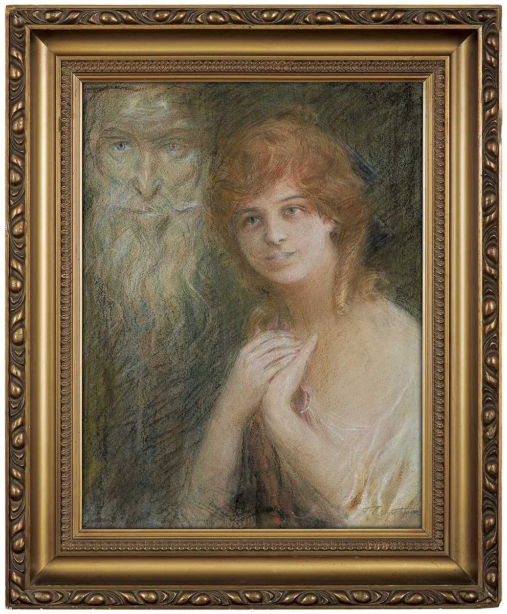 Teodor Axentowicz (Braszów w Siedmiogrodzie 1859 - Kraków 1938) – malarz, pastelista, litograf – był jednym z najbardziej znanych i cenionych malarzy polskich. Kształcił się w Akademii Sztuk Pięknych w Monachium pod kierunkiem Gabriela Hackla, Aleksandra Wagnera, Gyuli Benczúra. Studia uzupełniał w Paryżu, gdzie następnie przebywał przez lat kilkanaście. Brał udział w paryskich Salonach; w 1890 otrzymał członkostwo Société Nationale des Beaux-Arts. W tym czasie wielokrotnie wyjeżdżał również do Londynu. W 1895 powrócił do kraju i zamieszkał na stałe w Krakowie, powołany na profesora tamtejszej Szkoły Sztuk Pięknych (od 1900 Akademii). W uczelni tej nauczał nieprzerwanie do 1934, dwukrotnie pełniąc funkcję rektora (lata 1910-11 oraz 1927-28). Był jednym z członków-założycieli Towarzystwa Artystów Polskich „Sztuka”, członkiem wiedeńskiej „Secesji” i współpracownikiem jej pisma „Ver Sacrum”. Powodzenie przyniosły mu zwłaszcza idealizowane wizerunki wytwornych dam oraz wdzięczne portrety dziecięce. Malował też obrazy o tematyce rodzajowej; był jednym z pierwszych malarzy Huculszczyzny i Hucułów. Tworzył obrazy historyczne i kompozycje symboliczne związane z upływem czasu, przemijaniem, starością. We wczesnym, monachijskim okresie były to obrazy utrzymane w duchu akademickiego realizmu; na późniejszą twórczość artysty wywarło wpływ angielskie malarstwo XVIII w. oraz dzieła malarzy współczesnych - Boldoniego, Whistlera, Sargenta. Jego obrazy cechuje dekoracyjność, elegancja, świeżość subtelnej gamy kolorów i delikatna secesyjna stylizacja. Początkowo malował olejno i akwarelą, a po 1890 przede wszystkim mistrzowsko opanowaną techniką pastelu. Zajmował się ilustratorstwem i litografią, projektował plakaty wystaw „Sztuki”.