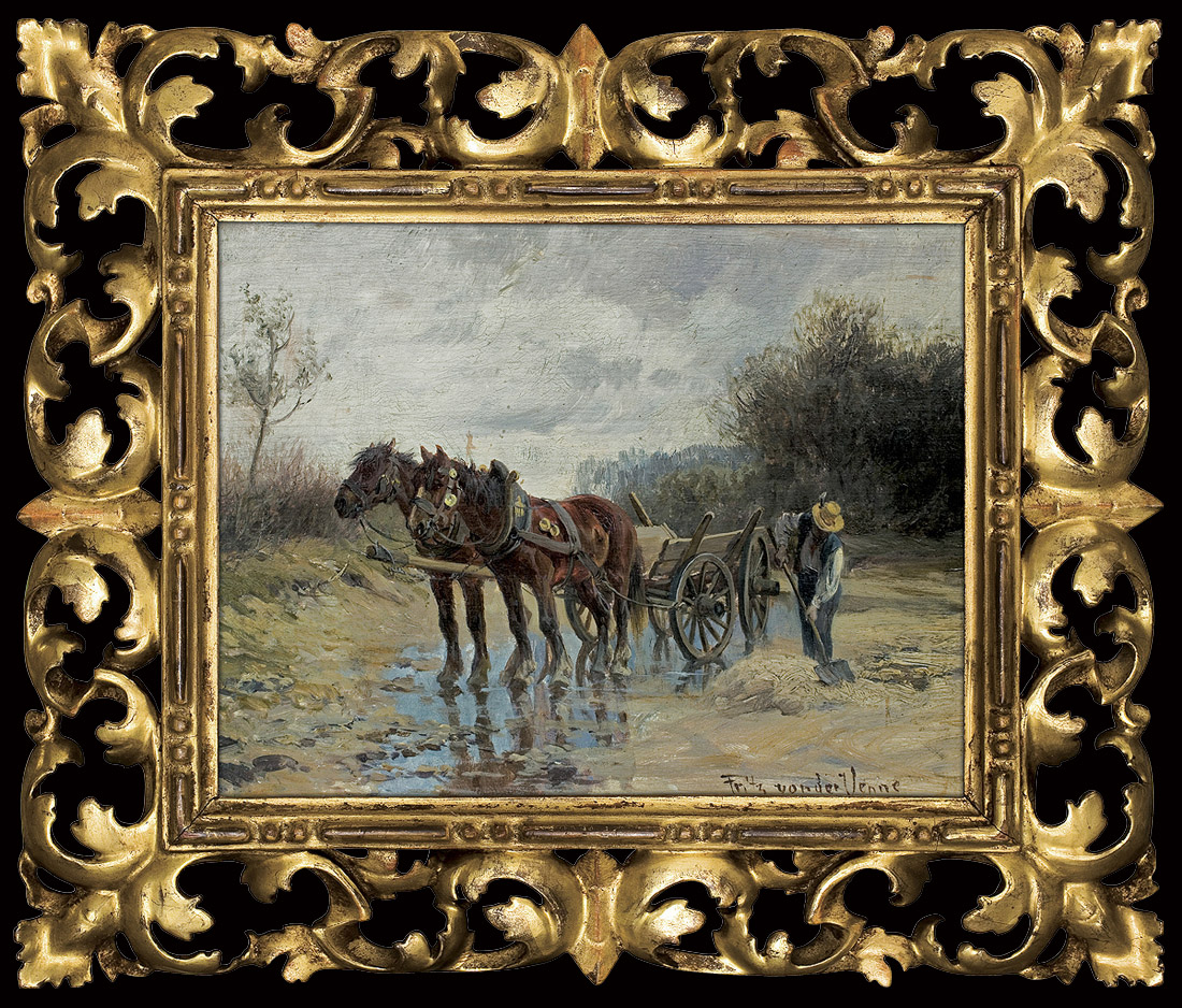 Fritz van der Venne - popularny malarz czynny w Monachium. Ulubionym motywem jego obrazów były konie, które przedstawiał w rodzajowo ujętych scenach na tle, najczęściej zimowego, krajobrazu. Malował zaprzęgi, powozy, sanny, wyjazdy i powroty z polowań, sceny z węgierskiej puszty, a nawet konne, „polskie“ korowody weselne.