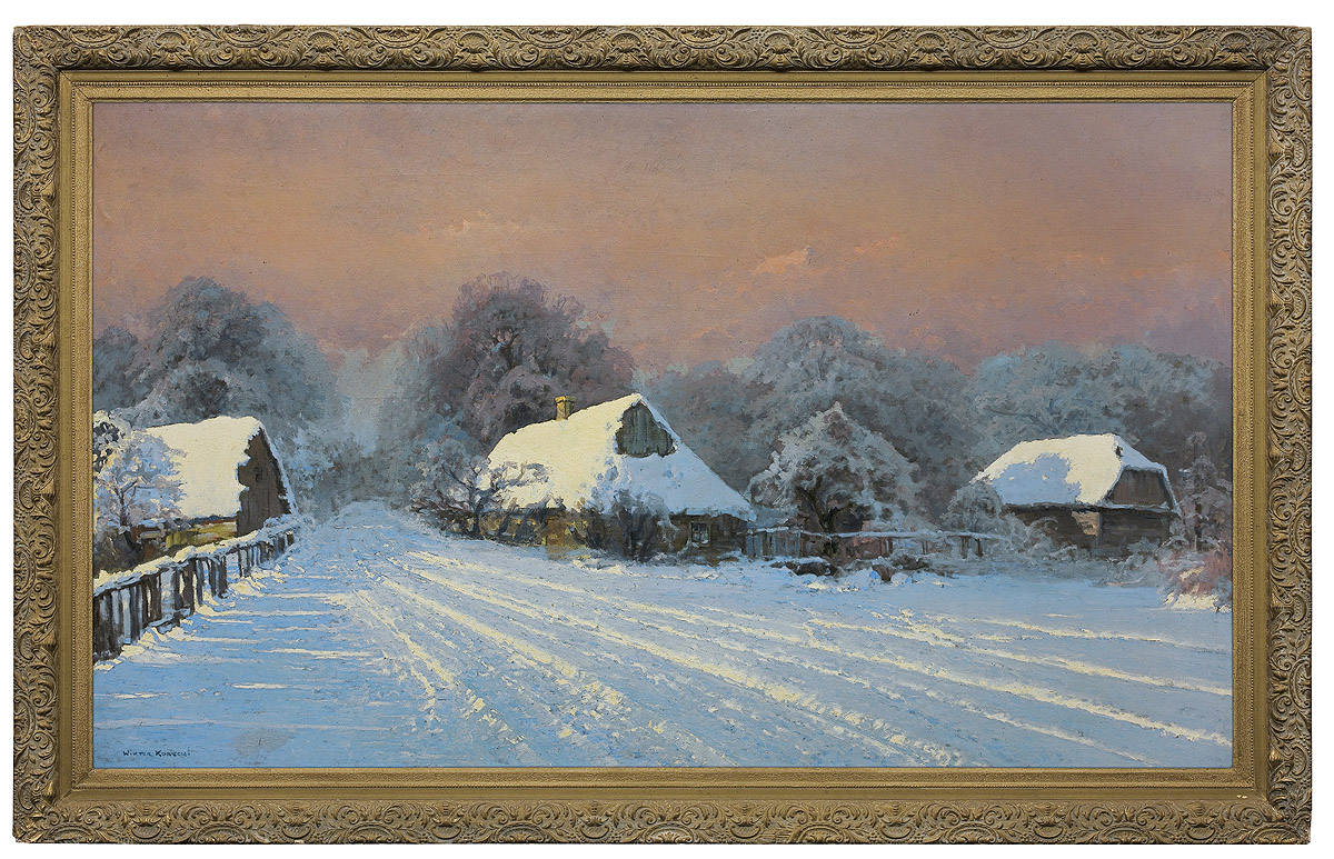 Wiktor Korecki (Kamieniec Podolski 1890 - Komorów k. Warszawy 1980) - malarz pejzażysta - gimnazjum ukończył w Kijowie, tam też studiował w Szkole Rysunkowej Aleksandra Muraszki. Po studiach wrócił do Kamieńca Podolskiego, skąd w roku 1921 wyjechał do Warszawy. Tu miał pracownię na rogu ulic Tamki i Cichej. Niestety zgromadzone tam obrazy spłonęły w czasie powstania 1944 roku. Po powstaniu artysta przebywał w obozie w Pruszkowie skąd trafił do obozu pracy w Lipsku. Do kraju powrócił w roku 1946 i zamieszkał w Komorowie pod Warszawą, a później w Milanówku. Jego nastrojowe krajobrazy emanujące spokojem i pogodą cieszyły się zawsze dużą popularnością. Korecki najczęściej malował pejzaże zimowe z motywem leśnej drogi i strumienia wijącego się wśród śniegów, a obok nich także wiosenne, letnie czy jesienne widoki z Mazowsza.
