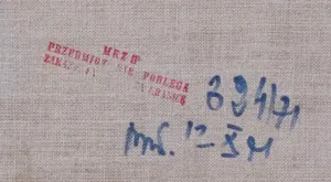 Na odwrocie na płótnie stempel: MKZ | PRZEDMIOT NIE PODLEGA | ZAKAZOWI WYWOZU ZA GRANICĘ.