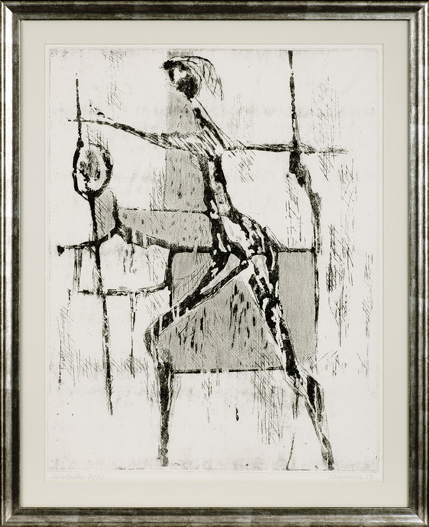 Halina Chrostowska (Warszawa 1929- Warszawa 1990) - pobierała pierwsze nauki pod okiem ojca, Stanisława Ostoja-Chrostowskiego, wybitnego grafika okresu międzywojennego i pierwszego rektora warszawskiej ASP po wojnie. Studiowała malarstwo i grafikę w latach 1946-1950 w tej uczelni. W 1950 rozpoczęła pracę pedagogiczną na Wydziale Grafiki, którą kontynuowała do 1989. Od 1962 prowadziła własną pracownię grafiki warsztatowej, w której wykształciła wielu wybitnych artystów. Równolegle działała w Związku Polskich Artystów Plastyków. Debiutowała w pierwszej połowie lat 50. cyklami akwafort, m. in. „W walce”, „Powstanie Kościuszkowskie”, „Z PGR-u”, nagradzanych na Ogólnopolskich Wystawach Plastyki (1952-1954). W 1955 zdobyła II nagrodę i srebrny medal na Międzynarodowym konkursie i wystawie towarzyszącym V Światowemu Festiwalowi Młodzieży i Studentów w Warszawie. Mimo dominacji doktryny socrealizmu, artystka potrafiła wypracować formułę realizmu dalekiego od polityki, refleksyjnego i wiernego nieupiększonym realiom tych lat. Od około 1956 w jej twórczości górę wzięło zainteresowanie eksperymentami formalnymi i technicznymi. Początkowo tworzyła grafiki czarno-białe, skupiając się na efektach fakturowych (cykle „Astralny” (1957), „Komedianci”, 1961-1963). Łączyła niekiedy matryce metalowe z linorytniczymi i drzeworytniczymi. W 1968 wprowadziła do swych prac kolor, tworząc serie „Portretów” i różnobarwnych „Figur”. Grafiki Chrostowskiej łączyły związki z równoległymi nurtami malarstwa informel, w latach 70. z pop-artem. Od końca lat 50. datują się największe sukcesy artystki na forum krajowym i międzynarodowym. Uczestniczyła m. in. w I Biennale Młodych, Paryż 1959, II Międzynarodowym Biennale Grafiki, Tokio 1960 (gdzie uzyskała nagrodę Muzeum Ohara), VI Biennale Sztuki, Săo Paulo 1961, II Międzynarodowe Biennale Grafiki, Florencja 1970 (złoty medal). Kryzys zdrowotny (nadwerężenie nadgarstków) w 1973 zmusił ją do przejściowego zaniechania forsownej pracy przy grafice. Powstał wtedy rysunkowy cykl „Ręce”, w którym artystka odbijała swe dłonie pokryte farbami. Od 1975 wróciła do grafiki, tworząc kolejne kompozycje z zarzuconych cyklów. Od 1977 wykonywała unikatowe odbitki łączące grafikę z malarstwem i collage'em. W 1986 zapadła na chorobę nowotworową. Od 1988 wprowadziła do swego warsztatu sitodruk i kontynuowała eksperymenty malarskie.