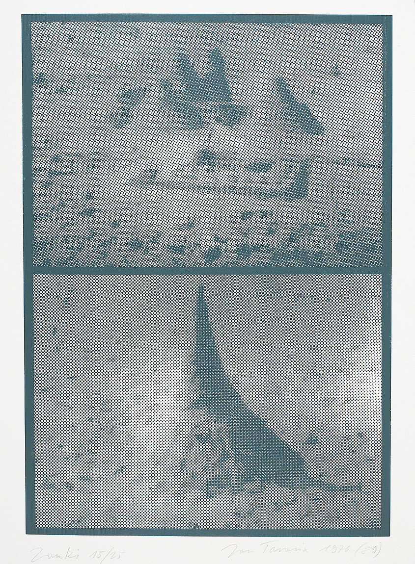 Jan Tarasin (Kalisz 11 IX 1926 - Warszawa 8 VIII 2009) studiował malarstwo w ASP w Krakowie pod kierunkiem prof. Zbigniewa Pronaszki (1946-1951). Jeszcze jako student zadebiutował na I Wystawie Sztuki Nowoczesnej w Krakowie w 1948/49. W połowie lat 50. stworzył cykle litografii: „Nowa Huta i jej mieszkańcy“, 1954, „Dom“, 1955). W pierwszym przeciwstawił się oficjalnemu optymizmowi, w drugim, operując symboliką martwej natury, zawarł treści egzystencjalne i odnoszące do niedawnego dramatu wojny. Po 1956 zaczął malować obrazy niefiguratywne. Układy wyodrębnionych elementów (określanych jako „przedmioty“) umieszczane były przez artystę na płaszczyźnie (cykl „Wnętrze“, 1957) ), lub w aluzyjnej przestrzeni (cykle „Uczta“, 1957, „Brzeg“, 1962-1964, „Przedmioty policzone“, od 1968, „Antykwariat“, 1968). Zasada ta utrzymuje się w jego malarstwie w następnych latach, różnice między okresami twórczości dotyczą sposobu opracowania „przedmiotów“ i ich usytuowania w przestrzeni obrazu lub wobec tła. Od lat 70. „przedmioty“ zmieniają się w graficzne, zwykle czarne znaki na jasnych tłach (cykl „Kolekcja“, od 1971). Tła z kolei bywają iluzyjnie przestrzenne, zróżnicowane walorowo, miękkie. W latach 90. artysta wrócił do kolorystycznego, bardziej malarskiego rozwiązywania zarówno znaków, jak i teł, często ciemnych lub przenikających się z „przedmiotami“ (cykl „Wylęgarnia przedmiotów“, 1992). Tarasin od 1962 jest członkiem „Grupy Krakowskiej“. W 1963-67 uczył na Wydziale Architektury Wnętrz krakowskiej ASP. W 1967 przeniósł się do Warszawy, w 1974 podjął pracę pedagogiczną na Wydziale Malarstwa ASP w Warszawie. W 1987-90 był rektorem tej uczelni. W 1976 otrzymał Nagrodę Krytyki Artystycznej im. Cypriana Kamila Norwida, w 1984 Nagrodę im. Jana Cybisa.; Nagroda na MB Sztuki w San Marino 1965. Równolegle z malarstwem zajmował się rysunkiem i grafiką - do lat 60. litografią, od 1974 serigrafią. W 1974-1981 wydał 8 autorskich „Zeszytów“ z serigrafiami i własnymi tekstami. W 1995 w Galerii Zachęta odbyła się wystawa artysty, której towarzyszył monograficzny katalog.