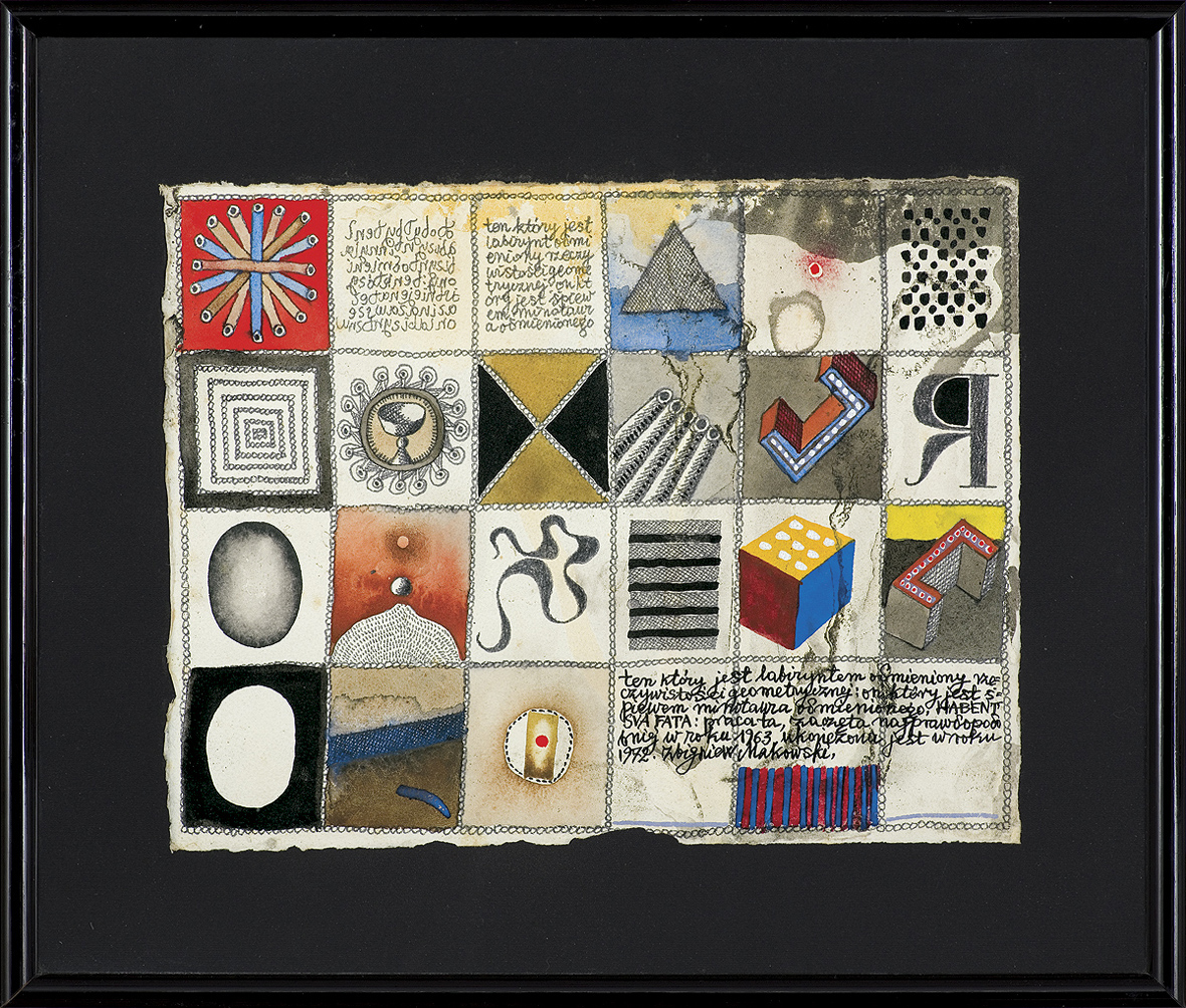 Zbigniew Makowski (Warszawa 31 I 1930 - Warszawa 19 VIII 2019) studiował w ASP w Warszawie w latach 1950-1956, dyplom uzyskał w pracowni Kazimierza Tomorowicza. Początkowo skłaniał się ku surrealizmowi - podczas pobytu w Paryżu w 1962 zetknął się z André Bretonem i międzynarodowym ruchem Phases. Jednak decydujący wpływ na wyraz jego sztuki wywarły pozamalarskie zainteresowania, jakim się oddaje. Jest literatem, poetą, erudytą, zwłaszcza zaś znawcą szerokiego spektrum filozofii i wiedzy tajemnej wielu kultur. Znawstwo to wykorzystuje w swoich pracach malarskich, rysunkowych, a także w unikatowych książkach, które własnoręcznie wykonuje na specjalnie preparowanych papierach. W swych pracach nawarstwia symbole, cytaty i znaczenia w nieczytelny, zdawałoby się, chaos. Wypada jednak wierzyć krytykom, którzy twierdzą, iż prace Makowskiego otwierają przed cierpliwym i intelektualnie przygotowanym „czytelnikiem“ świat swoistej narracji. Sam artysta zaś zwraca uwagę na „permutacyjną“ strukturę swych prac, w których rozmaite cytaty i odniesienia kulturowe przeplatają się z jego prywatną ikonografią. Tak czy inaczej, z pewnością w pracach Makowskiego da się wyróżnić pewien „alfabet“ wizualno-symboliczny, którego elementy pojawiają się w nich stale w różnych konfiguracjach. Należą doń np. takie wizerunki, jak klucz, drabina, studnia, mandala, kielich itp. Otaczają je napisy, często łacińskie, a także pojedyncze cyfry, litery, ornamenty. Określił je ktoś jako rebusy o wielkiej urodzie, które można odczytywać, można też kontemplować. Od roku 1982 artysta przestał wystawiać, ale nie tworzyć. Powstają wówczas prace będące rodzajem nowoczesnego notatnika, rozpoczętego jeszcze w latach 60., do którego artysta powraca z nowymi przemyśleniami. Artysta jest laureatem wielu nagród, m.in. Nagrody Krytyki Artystycznej im. Norwida (1973) i Nagrody im. Jana Cybisa (1992). Jego wielka kompozycja "Mirabilitas secundum diversos modos exire potest a rebus" (1973-1980) zdobi genewską siedzibę ONZ jako dar rządu polskiego.