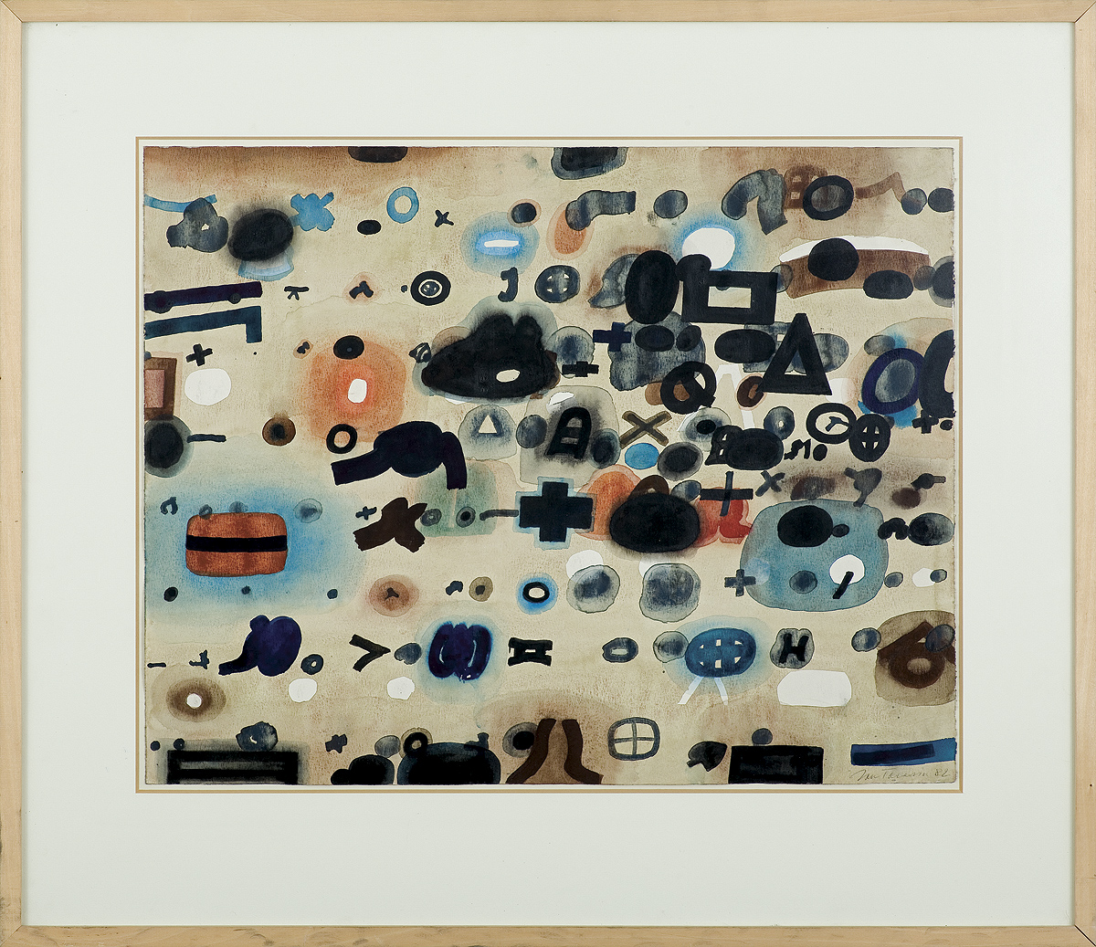 Jan Tarasin (Kalisz 11 IX 1926 - Warszawa 8 VIII 2009) studiował malarstwo w ASP w Krakowie pod kierunkiem prof. Zbigniewa Pronaszki (1946-1951). Jeszcze jako student zadebiutował na I Wystawie Sztuki Nowoczesnej w Krakowie w 1948/49. W połowie lat 50. stworzył cykle litografii: „Nowa Huta i jej mieszkańcy“, 1954, „Dom“, 1955). W pierwszym przeciwstawił się oficjalnemu optymizmowi, w drugim, operując symboliką martwej natury, zawarł treści egzystencjalne i odnoszące do niedawnego dramatu wojny. Po 1956 zaczął malować obrazy niefiguratywne. Układy wyodrębnionych elementów (określanych jako „przedmioty“) umieszczane były przez artystę na płaszczyźnie (cykl „Wnętrze“, 1957) ), lub w aluzyjnej przestrzeni (cykle „Uczta“, 1957, „Brzeg“, 1962-1964, „Przedmioty policzone“, od 1968, „Antykwariat“, 1968). Zasada ta utrzymuje się w jego malarstwie w następnych latach, różnice między okresami twórczości dotyczą sposobu opracowania „przedmiotów“ i ich usytuowania w przestrzeni obrazu lub wobec tła. Od lat 70. „przedmioty“ zmieniają się w graficzne, zwykle czarne znaki na jasnych tłach (cykl „Kolekcja“, od 1971). Tła z kolei bywają iluzyjnie przestrzenne, zróżnicowane walorowo, miękkie. W latach 90. artysta wrócił do kolorystycznego, bardziej malarskiego rozwiązywania zarówno znaków, jak i teł, często ciemnych lub przenikających się z „przedmiotami“ (cykl „Wylęgarnia przedmiotów“, 1992). Tarasin od 1962 jest członkiem „Grupy Krakowskiej“. W 1963-67 uczył na Wydziale Architektury Wnętrz krakowskiej ASP. W 1967 przeniósł się do Warszawy, w 1974 podjął pracę pedagogiczną na Wydziale Malarstwa ASP w Warszawie. W 1987-90 był rektorem tej uczelni. W 1976 otrzymał Nagrodę Krytyki Artystycznej im. Cypriana Kamila Norwida, w 1984 Nagrodę im. Jana Cybisa.; Nagroda na MB Sztuki w San Marino 1965. Równolegle z malarstwem zajmował się rysunkiem i grafiką - do lat 60. litografią, od 1974 serigrafią. W 1974-1981 wydał 8 autorskich „Zeszytów“ z serigrafiami i własnymi tekstami. W 1995 w Galerii Zachęta odbyła się wystawa artysty, której towarzyszył monograficzny katalog.