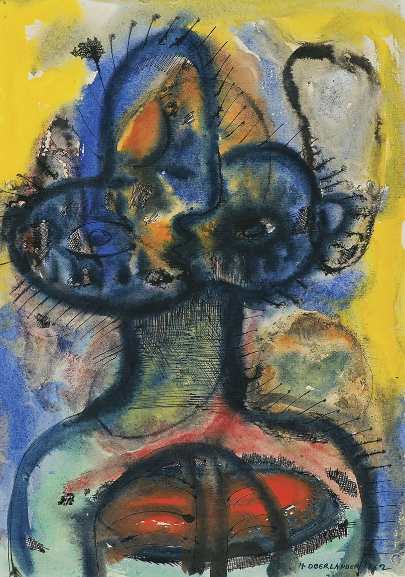 Marek Oberländer (Szczerzec k. Lwowa 1922 - Nicea 1978) w czasie wojny służył w Armii Czerwonej. W latach 1946-48 uczył się w Liceum Sztuk Plastycznych w Warszawie. Następnie w latach 1948-53 studiował w warszawskiej ASP. W 1955, wraz z Elżbietą Grabską, Janem Dziędziorą i Jackiem Sienickim był współorganizatorem Ogólnopolskiej Wystawy Młodej Plastyki, która pod nazwą „Arsenału” weszła do legendy polskiej sztuki współczesnej. Jednym z symboli postawy i stylistyki „arsenałowej” stał się pokazany na tej wystawie obraz Oberländera Napiętnowani. W latach 1956-61 artysta kierował galerią działającą pod patrontem tygodników kulturalno-społecznych, kolejno: „Po Prostu”, „Nowej Kultury” i „Współczesności”. W 1963 wyjechał do Szwecji, w 1964 osiadł we Francji. Mieszkał w Paryżu i Nicei, gdzie zmarł przedwcześnie na zawał serca. Wybór najlepszych prac ze swego dorobku artystycznego przekazał w 1977 Muzeum Narodowemu we Wrocławiu. W latach 50. tworzył kompozycje figuralne o tematyce historycznej i martyrologicznej, często poświęcone – jak wymienieni Napiętnowani – tragedii Holocaustu. Z czasem uprościł i zredukował formy, wzbogacając jednocześnie ich fakturę. Choć z reguły nie przekraczały progu abstrakcji, „Figury” Oberländera, zazwyczaj malowane i rysowane swobodnie rozlewającym się tuszem, stanowią oryginalną odmianę „czarnego”, poarsenałowego informelu polskiego. Po osiedleniu się we Francji artysta częściej malował olejem i gwaszem, wzbogacając i rozjaśniając paletę. Obok malarstwa uprawiał rysunek, grafikę warsztatową (litografia) i użytkową (ilustracja).