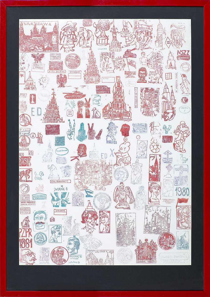 Edward Dwurnik (Radzymin 19 IV 1943 - Warszawa 28 X 2018) studiował malarstwo w ASP w Warszawie (1963-1970), jednak jako swego „mistrza“ wymienia Nikifora. Jego to prace, zobaczone po raz pierwszy w 1965, zainspirowały ówczesnego studenta III roku do narysowania pierwszych prac z cyklu „Podróże autostopem“, które kontynuował w nastepnych latach. W 1972-1978 powstawał cykl „Sportowcy“, w którym portretowane były, dodajmy - kąśliwie, typowe postaci z lat 70. Równolegle od 1975 powstawał cykl „Robotnicy“, który kulminował w okresie „Solidarności“ 1980-1981. Za prace z tego cyklu Dwurnik otrzymał w 1981 Nagrodę Krytyki Artystycznej im. Cypriana Kamila Norwida, natomiast za obrazy z cyklu „Warszawa“ (1981), proroczo zapowiadające stan wojenny - Nagrodę Kulturalną „Solidarności“ podziemnej w 1983. W latach 80. malarstwo Dwurnika przybrało wyraz ekspresyjny i dramatyczny. Powstające w tej dekadzie obrazy miały niejednokrotnie wymowę polityczną, przybierały też kostium historyczny, tak czy inaczej odnoszący się do współczesnych spraw i realiów. Cykl „Droga na Wschód“ (1989-91) upamiętniał ofiary stalinizmu, natomiast cykl „Od Grudnia do Czerwca“ (1990-94) - ofiary stanu wojennego. Zarówno ideowe, jak i czysto malarskie walory tych prac przyniosły artyście ogromne uznanie, zarówno w kraju jak i za granicą. Jego wyrazem była prestiżowa nagroda Fundacji Coutts & Co w Zurychu (1992). W latach 90. powstają cykle będące kontynuacją „Podróży autostopem“: „Niebieskie miasta“ (od 1993) i „Diagonale“ (od 1996), jak również kompozycje nowego typu, jak widoki morskie (cykl „Błękitne“, 1992-93) czy cykl „Wyliczanka“ (1996-99). Artysta wiele wystawia, miał ok. 100 wystaw indywidualnych w Polsce i za granicą, brał też udział w licznych wystawach i festiwalach krajowych i międzynarodowych, m.in.: X Biennale Sztuki Współczesnej, Menton 1974, Documenta 7, Kassel 1982, 5th Biennale, Sydney 1985, XIX Biennale Sztuki, Sao Paulo 1987; Olimpiada Sztuki, Seul 1988. Równolegle z malarstwem uprawiał rysunek, collage, grafikę warsztatową (litografia, techniki metalowe, kserografia, stemple) i użytkową (ilustracja, plakaty do własnych wystaw indywidualnych).