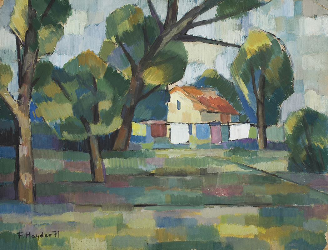 Fryderyk Antoni Hayder (Przemyśl 25 IV 1905 - Gliwice 1994) malarz, grafik; w latach 1925-1933 studiował w ASP w Krakowie - malarstwo w pracowni Józefa Mehoffera, rzeźbę u Xawerego Dunikowskiego, otrzymując dyplom z wyróżnieniem. Od 1935 zamieszkał w Warszawie. Obok malarstwa zajmował się grafiką użytkową i aranżacją wnętrz. Przed wojną brał udział w wystawach m.in. w Zachęcie (1937) i w TPSP w Krakowie (1938). Podczas Powstania Warszawskiego większa część prac uległa zniszczeniu. W 1945 artysta zamieszkał w Gliwicach, uratowane rysunki i szkicowniki z lat 1926-1944, przekazał do Muzeum w Gliwicach, gdzie po wojnie pracował jako kustosz. Współtworzył Gliwicki Oddział ZPAP, uczestniczył w wielu wystawach ogólnopolskich (Wystawa Plastyki Ziem Nadodrzańskich, W-wa 1959; Malarstwo w XV-lecie PRL, W-wa 1961). Miał szereg wystaw indywidualnych. m.in. 1957 CBWA Katowice, Szczecin; w 1984 z okazji 50-lecia pracy twórczej w Muzeum Okręgowym w Przemyślu; 1985 BWA Katowice, 1987 Zachęta Warszawa. Malował kompozycje figuralne, pejzaże, sceny rodzajowe i martwe natury. Po wojnie podejmował tematykę zaangażowana ideologicznie, od połowy lat 50. większą uwagę poświęcił stronie formalnej, malując w konwencji postkubistycznej. Obraz budował za pomocą linearnej siatki grubych konturów, kolor wyważony, rzadko o intensywnym natężeniu kładziony był płasko. Na początku lat 60. malował szereg abstrakcji o charakterze informelowskich, gdzie konstrukcja obrazu uległa zmiękczeniu, by w latach 70. powrócić do konturu wyznaczającego układ form i przestrzeń. Dążył do syntezy, malował dużymi płaszczyznami, upraszczał rysunek. Podejmował tematykę religijną, cykl „Droga Krzyżowa” znajduje się w Muzeum Narodowym Ziemi Przemyskiej w Przemyślu, jego prace są m.in. w zbiorach Muzeum Górnośląskiego w Bytomiu i w Muzeum w Gliwicach.