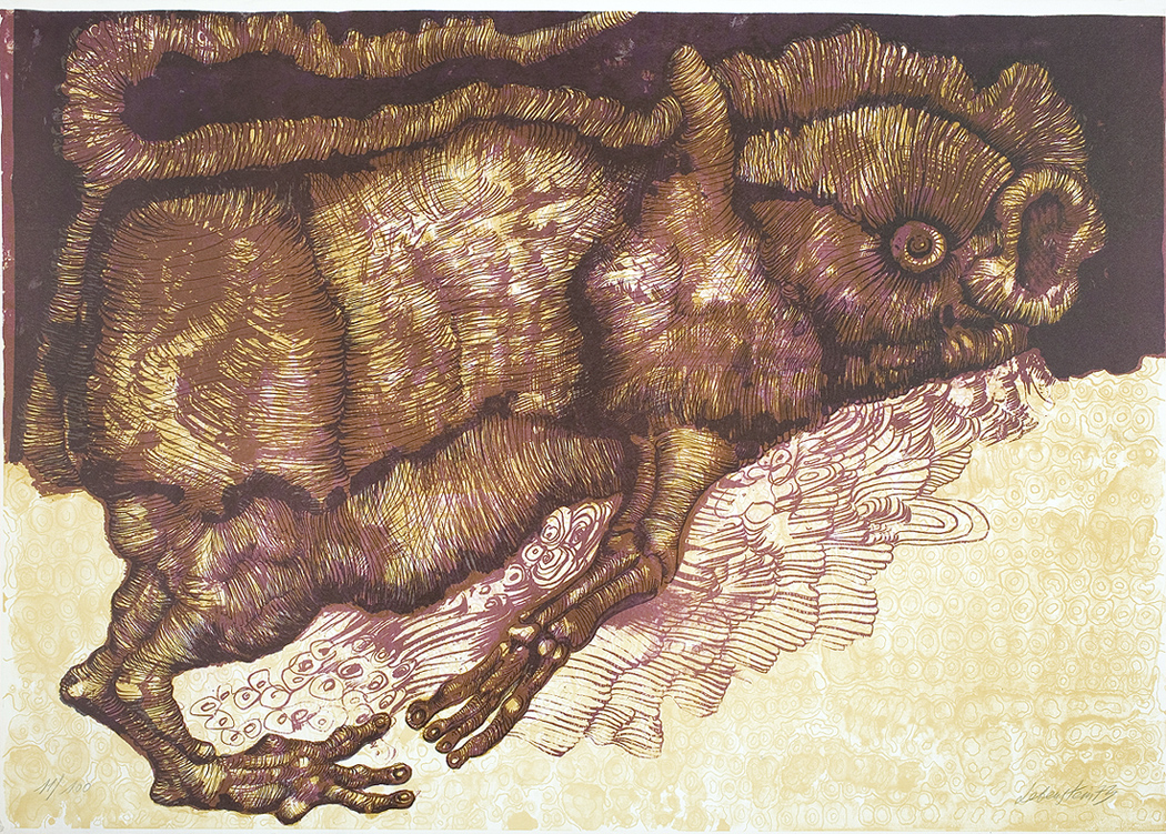 Jan Lebenstein (Brześć Litewski 1930 - Kraków 1999) w latach 1948-1954 studiował malarstwo w ASP w Warszawie pod kierunkiem prof. Eugeniusza Eibischa i Artura Nachta-Samborskiego. W 1955 wziął udział w wystawie w warszawskim Arsenale. Zaprzyjaźniony w czasie studiów z Mironem Białoszewskim, swą pierwszą wystawę indywidualną pokazał w 1956 w Teatrze na Tarczyńskiej. W 1959 zdobył Grand Prix de la Ville de Paris na I Biennale Młodych w Paryżu i w tym roku przeniósł się na stałe do Paryża. Po seriach "figur kreślonych" (na papierze milimetrowym) i "figur hieratycznych" z lat 1955-1958 maluje cykl "figur osiowych" (1958-1962), które wystawia w Paryżu i USA. Równolegle w 1960 zaczyna rysowane "karnety", rodzaj dziennika, który w przyszłości dostarczy motywów wykorzystanych w obrazach. W latach 1964-1965 maluje "Bestiarium", cykl fakturowych, archaizowanych stworów przypominających prehistoryczne wykopaliska. Bezpośrednio po nich wprowadza do swych obrazów postaci ludzkie i fantastyczne, odgrywające sceny ni to mitologiczne, ni to ze snu, często przesycone erotyką. W 1970 projektuje witraże dla Centre du Dialogue w Paryżu. W W 1971 otrzymuje obywatelstwo francuskie 1974 powstają gwasze inspirowane Folwarkiem zwierzęcym George'a Orwella. W latach 1976-1989 tworzy wyłącznie w technice gwaszu i pastelu, podejmując tematykę mitologiczną i zaczerpniętą z Biblii: cykle ilustracji do Księgi Hioba (wyd. 1979) i do Apokalipsy (wyd. 1986) w nowych przekładach Czesława Miłosza. W 1989 powraca do malarstwa olejnego (cykl "Pergamon"). Artysta otrzymał m. in. nagrodę Fundacji im. Alfreda Jurzykowskiego w 1976, Nagrodę Muzeum Archidiecezji Warszawskiej w 1985, Nagrodę im. Jana Cybisa w 1987.
