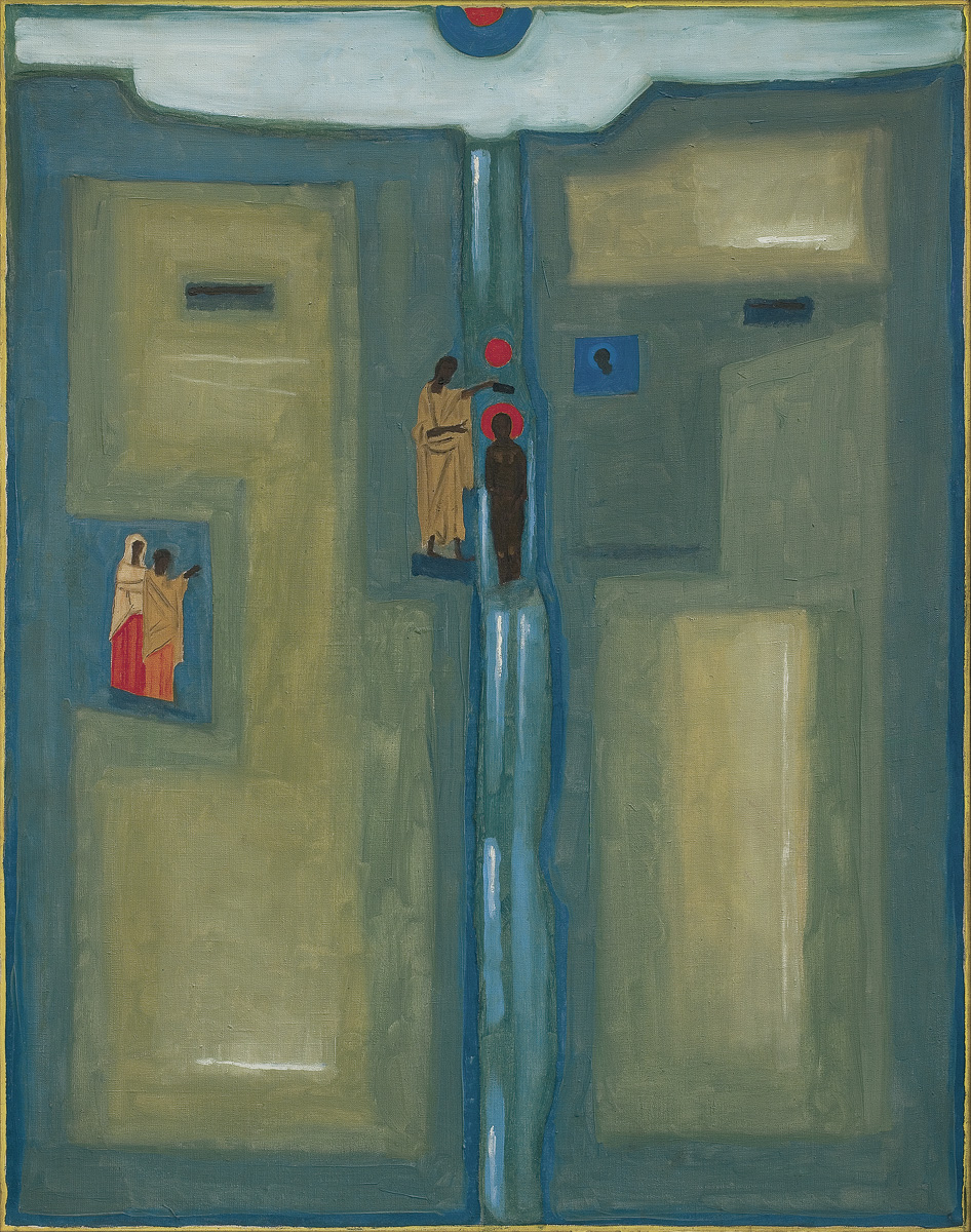 Jerzy Nowosielski (Kraków 1923 - Kraków 2011) w 1940 zaczął studia w Kunstgewerbeschule w Krakowie. W 1942 przebywał przez niecały rok w Ławrze św. Jana Chrzciciela pod Lwowem. Studiował tam sztukę malowania i historię ikon. Po powrocie do Krakowa w 1943 nawiązał ponowne kontakty z kręgiem przyszłej Grupy Krakowskiej. Po wojnie kontynuował studia w ASP w Krakowie pod kierunkiem prof. Eugeniusza Eibischa (1945-1947). Na I Wystawie Sztuki Nowoczesnej w Krakowie w 1948/49 pokazał obrazy utrzymane w nurcie abstrakcji geometrycznej. W latach socrealizmu nie wystawiał, zajmując się w tym czasie scenografią oraz malowaniem cerkwi i kościołów. W 1955 w Łodzi zaprezentował swą pierwszą wystawę indywidualną, w 1956 wziął udział w XXVIII Biennale w Wenecji. W latach 1957-1962 był pedagogiem w Państwowej Wyższej Szkole Sztuk Plastycznych w Łodzi, następnie w Akademii krakowskiej, gdzie wykładał na Wydziale Malarstwa do przejścia na emeryturę w 1993. W drugiej połowie lat 50. osiągnął charakterystyczny styl aktów, pejzaży i scen figuralnych we wnętrzach, który zawdzięczał swej fascynacji ikoną i doświadczeniom z malarstwem sakralnym. W 1976 podjął na nowo realizacje monumentalne, wykonując m.in. malowidła ścienne, stacje Drogi Krzyżowej i projekty witraży w kościele Opatrzności Bożej w Wesołej pod Warszawą (1976-1979). Artysta powszechnie uznawany był za autorytet w dziedzinie sztuki zakorzenionej w wartościach duchowych.