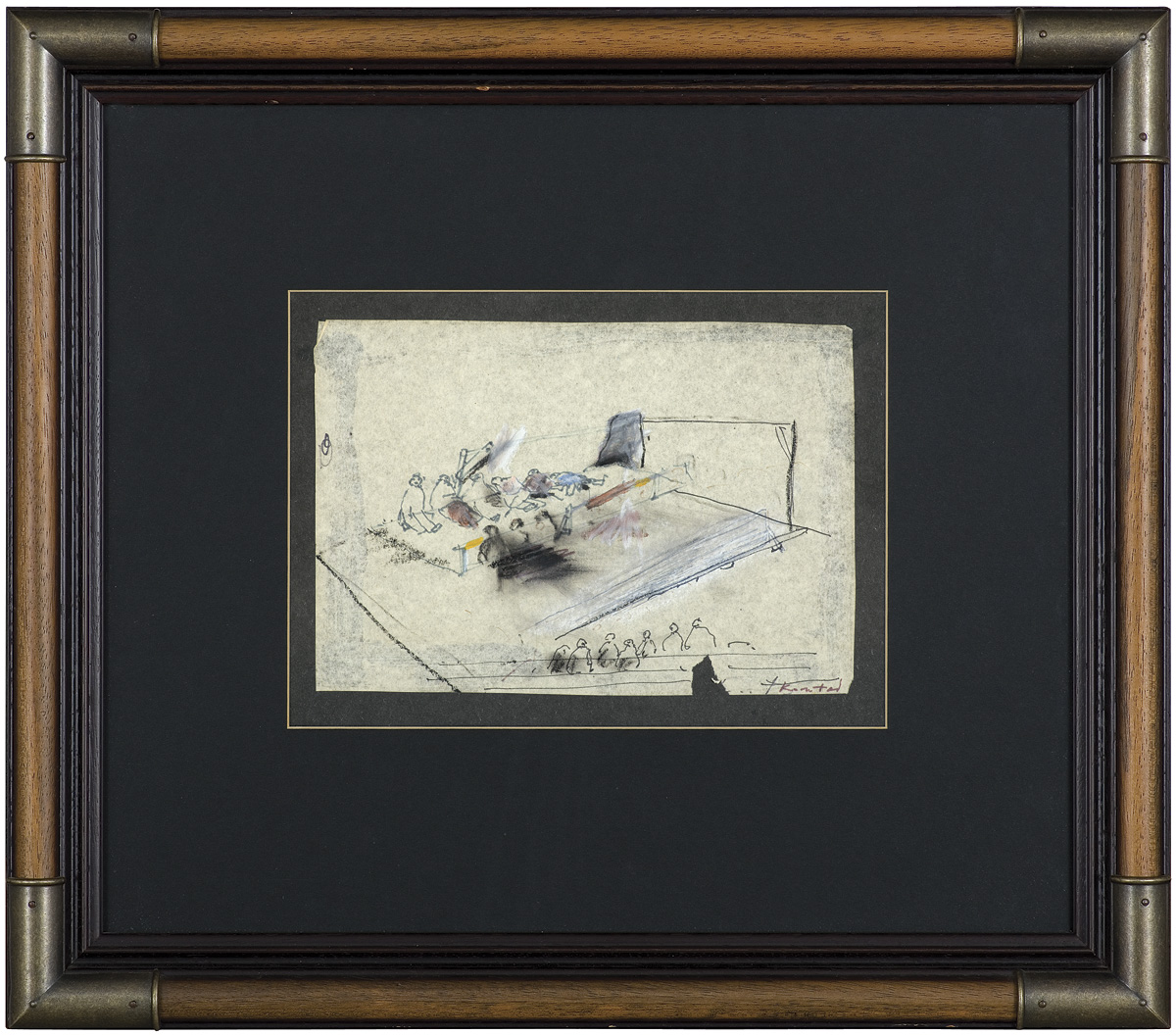 Tadeusz Kantor (Wielopole Skrzyńskie 1915 - Kraków 1990) studiował scenografię w ASP w Krakowie w latach 1934-1939. W 1942 założył Teatr Podziemny, który działał do 1944, dając dwa spektakle: "Balladynę" i "Powrót Odysa". W trakcie prac nad spektaklami zawiązało się grono artystów, którzy w 1945 utworzyli pod wodzą Kantora „Grupę Młodych Plastyków“. Ta z kolei stała się zalążkiem zarówno eksperymentalnego teatru Cricot 2 (utworzonego w 1955), jak i drugiej „Grupy Krakowskiej“ (utworzonej w 1957). W 1947 Kantor przebywał na rocznym stypendium w Paryżu, po powrocie był jednym z organizatorów I Wystawy Sztuki Nowoczesnej, Kraków 1948/49. W latach 1950-1954 nie uczestniczył w wystawach. Od 1955 jego twórczość biegła dwutorowo. Z jednej strony działał jako malarz, twórca „ambalaży“, od 1965 happeningów, z drugiej - poświęcał się pracy nad kolejnymi spektaklami Cricot 2, z których każdy był wydarzeniem artystycznym, zwłaszcza od lat 70.: "Umarła klasa" (premiera 1975), "Wielopole, Wielopole" (1980), "Niech sczezną artyści" (1985), "Nigdy tu już nie powrócę" (1988); zmarł po ostatniej próbie spektaklu "Dzisiaj są moje urodziny" (premiera 1991). Współpracował stale z galeriami: Krzysztofory w Krakowie (gdzie również miał siedzibę teatr Cricot 2) i Foksal w Warszawie. Od 1979 wraz z teatrem Cricot 2 przebywał głównie we Florencji. Był teoretykiem sztuki i teatru, autorem wielu manifestów. Uczestniczył w wystawach miedzynarodowych najwyższej rangi, jak Documenta w Kassel (1959, 1965), Biennale w Wenecji (1960), Biennale w Sao Paulo (1967). Otrzymał m.in. Prix Rembrandt Fundacji Goethego, Bazylea 1978, Medal „Arts et Lettres“ Ministra Kultury Francji 1982, nagrodę Fundacji im. Alfreda Jurzykowskiego, Nowy Jork 1982 i wiele nagród teatralnych.