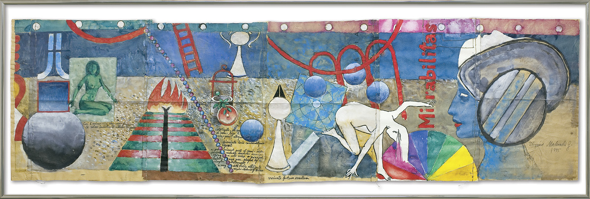 Zbigniew Makowski (Warszawa 31 I 1930 - Warszawa 19 VIII 2019) studiował w ASP w Warszawie w latach 1950-1956, dyplom uzyskał w pracowni Kazimierza Tomorowicza. Początkowo skłaniał się ku surrealizmowi - podczas pobytu w Paryżu w 1962 zetknął się z André Bretonem i międzynarodowym ruchem Phases. Jednak decydujący wpływ na wyraz jego sztuki wywarły pozamalarskie zainteresowania, jakim się oddaje. Jest literatem, poetą, erudytą, zwłaszcza zaś znawcą szerokiego spektrum filozofii i wiedzy tajemnej wielu kultur. Znawstwo to wykorzystuje w swoich pracach malarskich, rysunkowych, a także w unikatowych książkach, które własnoręcznie wykonuje na specjalnie preparowanych papierach. W swych pracach nawarstwia symbole, cytaty i znaczenia w nieczytelny, zdawałoby się, chaos. Wypada jednak wierzyć krytykom, którzy twierdzą, iż prace Makowskiego otwierają przed cierpliwym i intelektualnie przygotowanym „czytelnikiem“ świat swoistej narracji. Sam artysta zaś zwraca uwagę na „permutacyjną“ strukturę swych prac, w których rozmaite cytaty i odniesienia kulturowe przeplatają się z jego prywatną ikonografią. Tak czy inaczej, z pewnością w pracach Makowskiego da się wyróżnić pewien „alfabet“ wizualno-symboliczny, którego elementy pojawiają się w nich stale w różnych konfiguracjach. Należą doń np. takie wizerunki, jak klucz, drabina, studnia, mandala, kielich itp. Otaczają je napisy, często łacińskie, a także pojedyncze cyfry, litery, ornamenty. Określił je ktoś jako rebusy o wielkiej urodzie, które można odczytywać, można też kontemplować. Od roku 1982 artysta przestał wystawiać, ale nie tworzyć. Powstają wówczas prace będące rodzajem nowoczesnego notatnika, rozpoczętego jeszcze w latach 60., do którego artysta powraca z nowymi przemyśleniami. Artysta jest laureatem wielu nagród, m.in. Nagrody Krytyki Artystycznej im. Norwida (1973) i Nagrody im. Jana Cybisa (1992). Jego wielka kompozycja "Mirabilitas secundum diversos modos exire potest a rebus" (1973-1980) zdobi genewską siedzibę ONZ jako dar rządu polskiego.