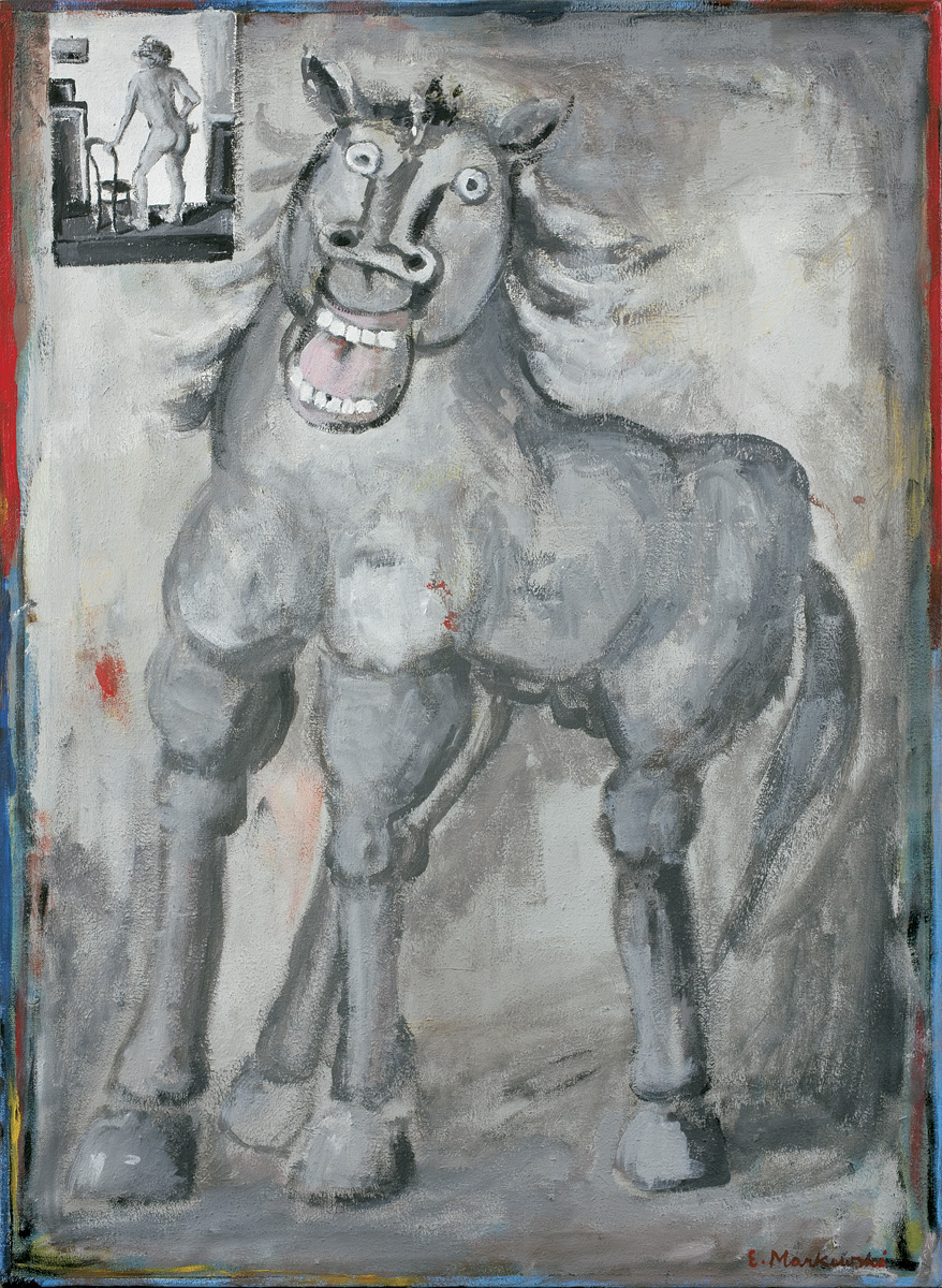 Eugeniusz Markowski (Warszawa 8 XI 1912 - Warszawa 24 II 2007) studiował w warszawskiej ASP, dyplom u prof. Tadeusza Pruszkowskiego uzyskał w 1939. Brał udział w kampanii wrześniowej i obronie Warszawy. W latach 1940-1950 przebywał we Włoszech, gdzie związał się z grupą Libera Associazione Arti Figurative i z Art Club w Rzymie. Zajmował się też projektowaniem scenografii dla rzymskiego Teatro delle Arti. Był dziennikarzem i dyplomatą we Włoszech i Kanadzie (1945-1955). Po powrocie do kraju był dyrektorem Biura Współpracy Kulturalnej z Zagranicą Ministerstwa Kultury i Sztuki (1960-1969), następnie wykładowcą i profesorem ASP w Warszawie (1969-1984). Współ-pracował jako scenograf z Operą Gdańską i teatrami warszawskimi. W 1963 reprezentował Polskę na Biennale w Sao Paulo, miał kilka wystaw indywidualnych. Jego ekspresyjny styl malowania, bezpośredniość i pewna rubaszność figuratywnych przedstawień walk i zmagań spowodowały, że w latach 80. uznano go za prekursora „nowodzikich".