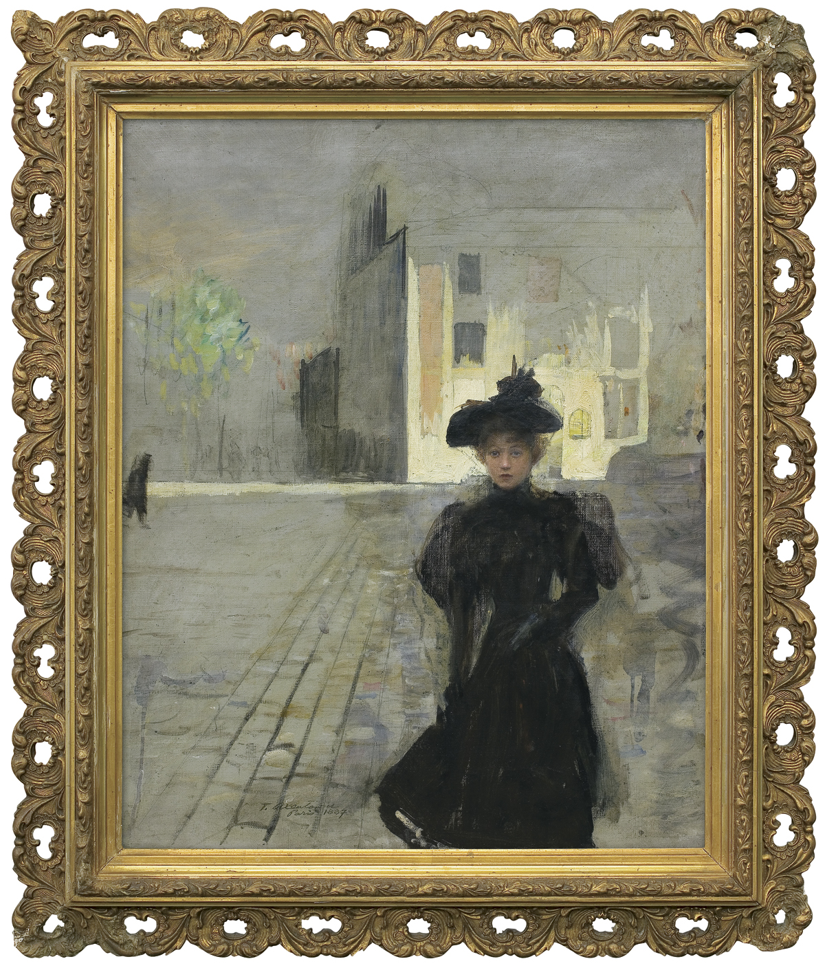 Teodor Axentowicz (Braszów w Siedmiogrodzie 1859 - Kraków 1938) – malarz, pastelista, litograf – był jednym z najbardziej znanych i cenionych malarzy polskich. Kształcił się w Akademii Sztuk Pięknych w Monachium pod kierunkiem Gabriela Hackla, Aleksandra Wagnera, Gyuli Benczúra. Studia uzupełniał w Paryżu, gdzie następnie przebywał przez lat kilkanaście. Brał udział w paryskich Salonach; w 1890 otrzymał członkostwo Société Nationale des Beaux-Arts. W tym czasie wielokrotnie wyjeżdżał również do Londynu. W 1895 powrócił do kraju i zamieszkał na stałe w Krakowie, powołany na profesora tamtejszej Szkoły Sztuk Pięknych (od 1900 Akademii). W uczelni tej nauczał nieprzerwanie do 1934, dwukrotnie pełniąc funkcję rektora (lata 1910-11 oraz 1927-28). Był jednym z członków-założycieli Towarzystwa Artystów Polskich „Sztuka”, członkiem wiedeńskiej „Secesji” i współpracownikiem jej pisma „Ver Sacrum”. Powodzenie przyniosły mu zwłaszcza idealizowane wizerunki wytwornych dam oraz wdzięczne portrety dziecięce. Malował też obrazy o tematyce rodzajowej; był jednym z pierwszych malarzy Huculszczyzny i Hucułów. Tworzył obrazy historyczne i kompozycje symboliczne związane z upływem czasu, przemijaniem, starością. We wczesnym, monachijskim okresie były to obrazy utrzymane w duchu akademickiego realizmu; na późniejszą twórczość artysty wywarło wpływ angielskie malarstwo XVIII w. oraz dzieła malarzy współczesnych - Boldoniego, Whistlera, Sargenta. Jego obrazy cechuje dekoracyjność, elegancja, świeżość subtelnej gamy kolorów i delikatna secesyjna stylizacja. Początkowo malował olejno i akwarelą, a po 1890 przede wszystkim mistrzowsko opanowaną techniką pastelu. Zajmował się ilustratorstwem i litografią, projektował plakaty wystaw „Sztuki”.