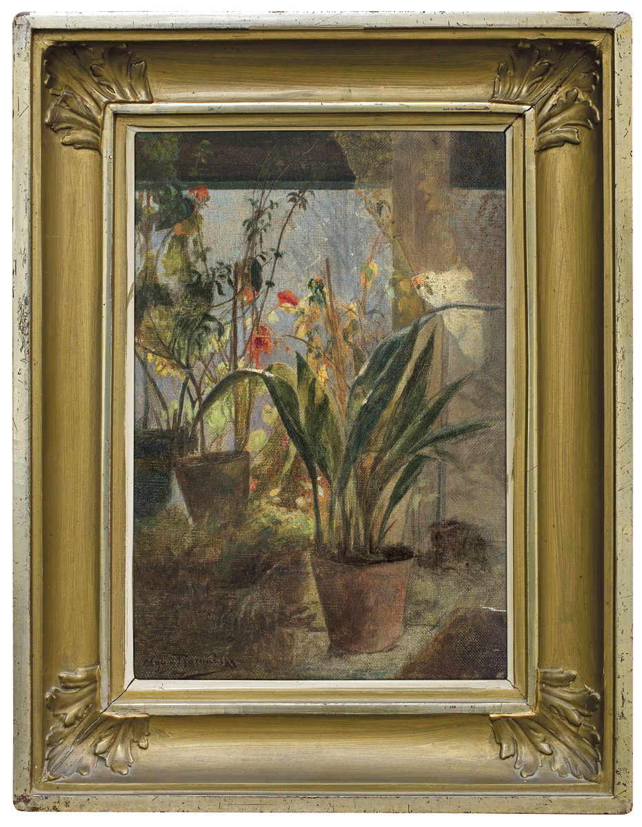 Olga Boznańska (Kraków 1865 - Paryż 1940) – wybitna malarka polska – kształciła się w Krakowie, początkowo pod kierunkiem matki, nauczycielki rysunków Eugenii Mondan, później u J. Siedleckiego, H. Lipińskiego, K. Pochwalskiego. W latach 1884-1886 uczęszczała także na Wyższe Kursy Artystyczne dla Kobiet przy Muzeum Techniczno-Przemysłowym. W 1886 wyjechała do Monachium gdzie uczyła się pod kierunkiem Karla Kricherdorfa i Wilhelma Dürra. Od 1889 pracowała samodzielnie i miała w Monachium własną pracownię. Od 1895 nauczała w prywatnej szkole malarstwa Theodora Humla. Z Monachium wielokrotnie jeździła do kraju, a także do Francji i Szwajcarii. W 1898 przeniosła się na stałe do Paryża, gdzie – przez lata – była jedną z czołowych postaci polskiej kolonii artystycznej. Debiutowała w roku 1886 na wystawie w krakowskim Towarzystwie Przyjaciół Sztuk Pięknych i odtąd stale uczestniczyła w wystawach krajowych i zagranicznych, zdobywając medale i wyróżnienia. W roku 1910 otrzymała francuską Legię Honorową, w roku 1938 order Polonia Restituta. Należała do wielu znaczących – polskich i europejskich – stowarzyszeń artystycznych. Główną domeną jej twórczości był portret – we wcześniejszym, monachijskim okresie często cało postaciowy, monumentalny i zwarty w formie; w czasach paryskich bardziej kameralny, nastrojowy, o zróżnicowanych walorowo plamach barwnych podporządkowanych dominacji jednego tonu, gubiących kontury i zacierających ostrość planów. Malowała też martwe natury i – rzadziej – pejzaże miejskie czy kompozycje rodzajowe.