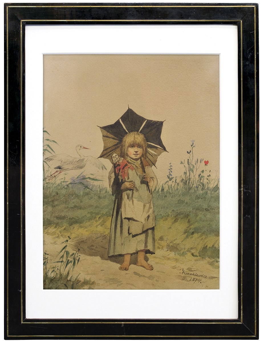 Antoni Kozakiewicz (Kraków 1841 – Kraków 1929) naukę malarstwa rozpoczął w Krakowie, gdzie w latach 1857-1866 studiował Szkole Sztuk Pięknych pod kierunkiem W. Łuszczkiewicza i F. Szynalewskiego. W roku 1863 zaciągnął się w szeregi powstańcze, wziął udział w bitwie pod Miechowem, a za udział w powstaniu został później na krótko uwięziony. W 1868 wyjechał do Wiednia i studiował w tamtejszej Akademii. Na wystawie akademickiej w roku 1870 pierwszą nagrodą odznaczono jego obraz Pro Deo et Patria albo nauki dziadunia. W 1871 otrzymał stypendium cesarskie i wyjechał do Monachium. Tu dzielił pracownię z Franciszkiem Streitem i Aleksandrem Kotsisem, przyjaciółmi jeszcze z czasów krakowskich. Razem z nimi często jeździł na „malarskie wyprawy” w góry Bawarii. Jeździł także na Węgry. Często też przyjeżdżał do Polski, znajdując tu motywy do obrazów rodzajowych. W Monachium artysta spędził prawie trzydzieści lat, a jego obrazy poszukiwane i zamawiane przez Kunsthandlerów, cieszyły się powodzeniem w Niemczech, Anglii, Francji, Australii i Stanach Zjednoczonych. W roku 1900 wrócił do kraju na stałe, zamieszkał w Warszawie, a następnie w Szczawnicy. We wcześniejszym okresie Kozakiewicz malował widoki miejskie, zajmowały go motywy literackie i sceny historyczne. Niejednokrotnie sięgał też po tematy powstańcze, wysnute bądź to z własnych wspomnień (Niespodziewani), bądź też inspirowane sztuką A. Grottgera (Trzy pokolenia). Jednak przede wszystkim malował obrazy rodzajowe – sceny z życia polskich wsi lub małych miasteczek, często także górali i Cyganów. Tworzył też portrety oraz scenki z bohaterami dziecięcymi – sentymentalne kompozycje o rozbudowanej anegdocie, często podkreślonej jeszcze tytułem (Całusa albo cię nie puszczę, Nie becz Jasiu, pójdziesz lulu, Pierwsze kroki). Obrazy te podobały się powszechnie, były nagradzane na wystawach a recenzenci zauważali, że „jest w nich zawsze świeżość myśli, urok, ciepło, szczegóły pysznie wykończone, kompozycja obmyślana z wdziękiem”. Wcześniejsze prace odznaczają się wysokim stopniem artyzmu, płótna z późniejszego okresu nie osiągały już tego poziomu a często bywały powtórzeniami dawniejszych kompozycji.