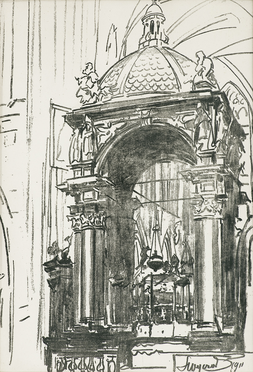 Leon Wyczółkowski (Huta Miastkowska k. Siedlec 1852 - Warszawa 1936) - malarz, grafik i pedagog, był jednym z najwybitniejszych artystów polskich tworzących na przełomie XIX i XX w. Studia artystyczne rozpoczął w warszawskiej Klasie Rysunkowej pod kierunkiem Wojciecha Gersona i Aleksandra Kamińskiego (1869-1873), następnie kontynuował je w monachijskiej Akademii Sztuk Pięknych u Aleksandra Wagnera (1875-1877), w Krakowie u Jana Matejki (1877/78) i podczas dwukrotnych wyjazdów do Paryża (1878 i 1889). Po studiach zamieszkał we Lwowie, później przeniósł się do Warszawy. Lata 1883-1893 spędził podróżując po Ukrainie i Podolu. W 1895 przeniósł się do Krakowa powołany na wykładowcę tamtejszej Szkoły Sztuk Pięknych. W latach następnych wiele podróżował – do Włoch, Francji, Hiszpanii, Holandii, Anglii. Należał do grona członków-założycieli Towarzystwa Artystów Polskich „Sztuka”. Wiele wystawiał tak w kraju, jak i za granicą. Lata 1929-1936 spędził w Poznaniu i Gościeradzu, dojeżdżając do Warszawy, gdzie (od 1934) prowadził katedrę grafiki w Akademii Sztuk Pięknych. Malował krajobrazy, portrety, sceny rodzajowe, martwe natury i kwiaty. Chętnie posługiwał się techniką pastelu i akwareli, był wybitnym grafikiem, zajmował się też rzeźbą.