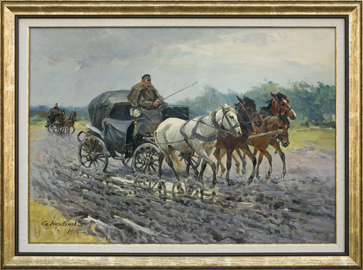 Czesław Wasilewski (ok. 1875 - Warszawa/ Łódź 1946?47) to popularny w okresie międzywojennym warszawski malarz, autor obrazów inspirowanych płótnami Kossaka, Brandta, Chełmońskiego, Wierusza-Kowalskiego czy Fałata. Był samoukiem; wprawdzie w 1911 zapisał się do warszawskiej Szkoły Sztuk Pięknych, ale o jego studiach nic bliższego nie wiadomo. Być może uczęszczał tam (1913-1917) do pracowni Wojciecha Kossaka, dla którego później, na początku lat dwudziestych, przygotowywał podmalówki do obrazów. Uczestniczył w wystawie w Lublinie (1922), wystawiał na Salonach warszawskiej Zachęty (1925,1926, 1927), w Katowicach (1926), Częstochowie (1927), Gdyni (1929), Kaliszu (1931), Poznaniu (1928, 1931). Malował przede wszystkim liczne zaprzęgi, sanny, wyjazdy na polowania, wypadki w podróży, ułanów na patrolu, łosie, sarny i dziki w lesie. Tworzył także nastrojowe pejzaże, wyraźnie inspirowane malarstwem J. Chełmońskiego Rzadziej malował także kwiaty i martwe natury. Utożsamiany z malarzem o nazwisku „Zygmuntowicz”, którego prace pojawiały się na rynku sztuki od trzydziestych lat XX wieku. Stawiany przed tym nazwiskiem inicjał I. lub F., sugerować może imię Ignacy lub Franciszek. Sylwetkę malarza bliżej omówił S. Bołdok w artykule Malarz o dwóch nazwiskach (Art and Business 1992, nr 7-8, s. 48-49).