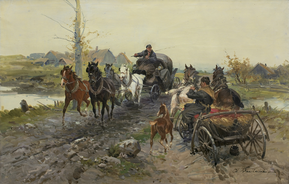Czesław Wasilewski (ok. 1875 - Warszawa/ Łódź 1946?47) to popularny w okresie międzywojennym warszawski malarz, autor obrazów inspirowanych płótnami Kossaka, Brandta, Chełmońskiego, Wierusza-Kowalskiego czy Fałata. Był samoukiem; wprawdzie w 1911 zapisał się do warszawskiej Szkoły Sztuk Pięknych, ale o jego studiach nic bliższego nie wiadomo. Być może uczęszczał tam (1913-1917) do pracowni Wojciecha Kossaka, dla którego później, na początku lat dwudziestych, przygotowywał podmalówki do obrazów. Uczestniczył w wystawie w Lublinie (1922), wystawiał na Salonach warszawskiej Zachęty (1925,1926, 1927), w Katowicach (1926), Częstochowie (1927), Gdyni (1929), Kaliszu (1931), Poznaniu (1928, 1931). Malował przede wszystkim liczne zaprzęgi, sanny, wyjazdy na polowania, wypadki w podróży, ułanów na patrolu, łosie, sarny i dziki w lesie. Tworzył także nastrojowe pejzaże, wyraźnie inspirowane malarstwem J. Chełmońskiego Rzadziej malował także kwiaty i martwe natury. Utożsamiany z malarzem o nazwisku „Zygmuntowicz”, którego prace pojawiały się na rynku sztuki od trzydziestych lat XX wieku. Stawiany przed tym nazwiskiem inicjał I. lub F., sugerować może imię Ignacy lub Franciszek. Sylwetkę malarza bliżej omówił S. Bołdok w artykule Malarz o dwóch nazwiskach (Art and Business 1992, nr 7-8, s. 48-49).