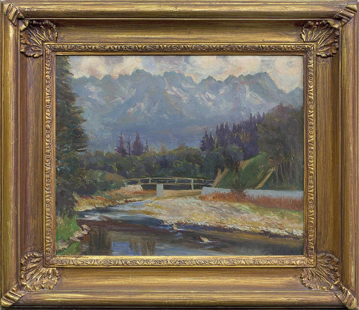 Jan Kazimierz Dzieliński (Lwów 1894 - Nowy Targ 1955)studiował w krakowskiej ASP malarstwo u Józefa Mehoffera i grafikę u Jana Wojnarskiego. Debiutował w 1931 w krakowskim TPSP. W 1935 wyjechał jako stypendysta do Francji. W latach 1934-1939 brał udział w licznych wystawach w Krakowie, Lwowie i Warszawie. Uczestnik kampanii wrześniowej, walczył następnie w szeregach Armii Krajowej. Odznaczony m.in. orderem Virtuti Militari. W 1949 odbyła się w TPSP w Krakowie wystawa retrospektywna 60 prac artysty. W okresie powojennym brał udział w wystawach ogólnopolskich. Obok malarstwa olejnego o tematyce głównie pejzażowej, tworzył również w różnych technikach graficznych. Jego prace znajdują się m.in. w Muzeum Narodowym w Krakowie, Muzeum Sztuki w Łodzi oraz w muzeum w Lille we Francji. Prace artysty obecne są na rynku antykwarycznym od paru lat.