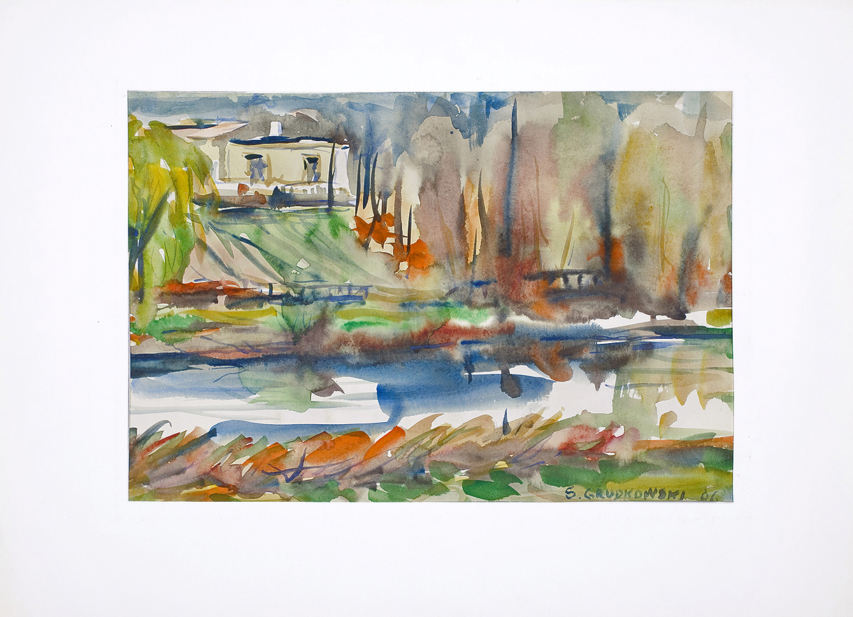 Sergiusz Grudkowski (Borowicze 11 II 1916 - Warszawa 10 VI 2008) - malarz, uznawany za jednego z najwybitniejszych współczesnych malarzy akwarelistów. Studiował w Akademii Sztuk Pięknych w Warszawie. Był uczniem Jana Cybisa i Janusza Podoskiego. Uprawiał również malarstwo sztalugowe. Prace artysty znajdują się w zbiorach prywatnych i muzeach, m.in.: Muzeum Historii m.st.Warszawy, Muzeum Narodowe w Warszawie, Akademie der Bildenden Wien w Wiedniu, Okręgowe Muzeum w Białowieży, Muzeum Jarosława Iwaszkiewicza w Stawiskach, Muzeum Mazowieckie w Płocku; Zamek Książąt Mazowieckich, Muzeum Okręgowe "Wisła" w Sandomierzu, Muzeum Teatru Narodowego w Warszawie.