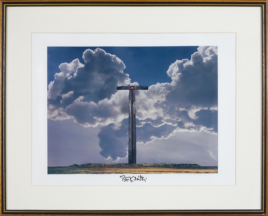 Zdzisław Beksiński (Sanok 24 II 1929 - Warszawa 21 II 2005) studiował w latach 1947-1952 na Wydziale Architektury Politechniki Krakowskiej. Był artystą samoukiem, który osiągnął niekwestionowaną pozycję w polskiej sztuce współczesnej, potwierdzoną obecnością jego prac na prestiżowych wystawach i w kolekcjach muzealnych. Początkowo zajmował się fotografią, którą interesował się od lat studenckich, po 1956 zyskując uznanie jako twórca fotogramów o estetyce opartej o efekty fakturowe. W latach 1958-1962 tworzył abstrakcyjne obrazy-reliefy o bogatej fakturze, głównie metalowe, będące odmianą malarstwa materii. Pod koniec tego okresu powstawały ażurowe formy o kształtach figur i pełnoplastyczne rzeźby w metalu. Kolejnym etapem jego twórczości były lata 1962-1974, kiedy poświęcał się głównie rysunkowi. W latach 60. rysował piórkiem i tuszem figuralne kompozycje odznaczające się karykaturalną deformacją postaci. Od końca lat 60. tworzył rysunki węglem i kredkami, będące monochromatyczną odmianą jego równoległej twórczości malarskiej. Od 1974 zajmował się niemal niepodzielnie malarstwem. Jego charakterystyczny styl bazował na perfekcji technicznej, której towarzyszyła niezwykłość wizji. Malował świat po katastrofie, naznaczony piętnem śmierci i rozpadu. Jego obrazy zaludniają postaci i stwory o ludzkich wprawdzie bądź zwierzęcych kształtach, lecz o cechach fantomów, automatów lub rozpadających się trucheł. Artysta nie nadawał swym obrazom i rysunkom tytułów (poza porządkującymi symbolami), akcentując w ten sposób swój brak zainteresowania dla literackiej strony przedstawień. Sam mówił, że malując całkowicie poddaje się wizji, „fotografuje“ ją. W ostatnich latach włączył do swego warsztatu artystycznego elektroniczne techniki generowania obrazu, które wykorzystywał do tworzenia komputerowych fotomontaży. Sztuka Beksińskiego, wielokrotnie wystawiana i omawiana, budzi skrajne emocje wśród znawców i publiczności.