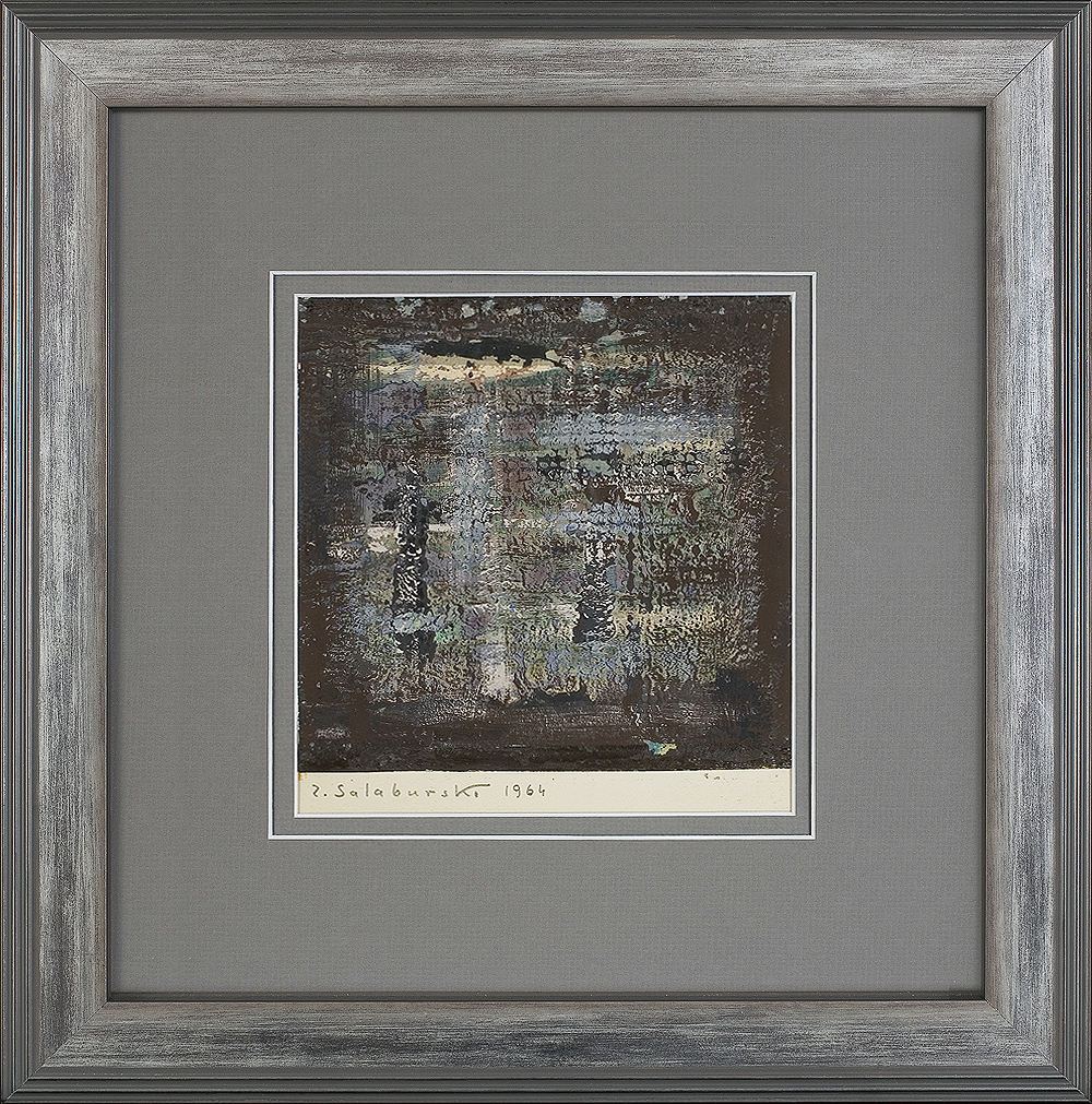 Zdzisław Salaburski (1922 Częstochowa - 2006 Warszawa) - malarz, aktor; Po ukończeniu w roku 1939 gimnazjum im. R. Traugutta w Częstochowie, w czasie okupacji niemieckiej w latach 1941-45 podjął prywatną naukę malarstwa i rysunku u Zdzisława Kałędkiewicza. Po wojnie znalazł się w Krakowie, gdzie kontynuował edukację artystyczną u prof. Pautscha. Równocześnie w roku 1946 zdał egzamin eksternistyczny przed Komisją Związku Artystów Scen Polskich uzyskując uprawnienia do wykonywania zawodu aktora. Pracował w teatrach w Toruniu, Łodzi i Warszawie, realizując tam również scenografię. Ostatecznie pracę w teatrze porzucił w roku 1961 poświęcając się w pełni malarstwu. Był członkiem „Grupy 55” przy Galerii Sztuki Nowoczesnej „Krzywe Koło”. Od chwili debiutu na wystawie związkowej ZPAP w Częstochowie w roku 1945 brał udział w wielu wystawach zarówno w kraju jak i zagranicą. Uprawiał malarstwo sztalugowe, jego najczęściej sporych rozmiarów abstrakcyjne kompozycje nawiązują do estetyki taszyzmu. Struktura obrazu i wyrafinowany koloryt, dynamika formy i plastyczność materii sytuują Salaburskiego w rzędzie znaczących przedstawicieli tego nurtu w malarstwie polskim.