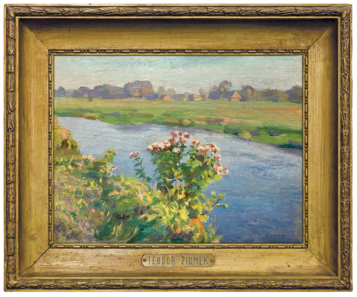 Teodor Ziomek (Skierniewice 1874 - Warszawa 1937) był znanym i cenionym pejzażystą, uczniem Wojciecha Gersona i Adama Badowskiego w warszawskiej Szkole Rysunkowej oraz Leona Wyczółkowskiego i Jana Stanisławskiego w krakowskiej Akademii Sztuk Pięknych, gdzie kształcił się w latach 1897-1901. Już jego prace studenckie były kilkakrotnie wyróżniane medalami. Po studiach, w roku 1905 zamieszkał na stałe w Warszawie, skąd wyjeżdżał w podróże po kraju i za granicę – na Krym, do Włoch, Niemiec, Austrii. Począwszy od 1897 roku dużo wystawiał, niejednokrotnie zdobywając prestiżowe nagrody i wyróżnienia (m.in. w latach 1899, 1905, 1911, 1928, 1929). Należał do kilku znaczących stowarzyszeń artystycznych, m.in. Stowarzyszenia Artystów Polskich „Sztuka” a także do warszawskiego Stowarzyszenia artystów „Odłam” (1908-19). Ponadto współpracował z redakcją miesięcznika literacko-artystycznego „Sfinks”, wychodzącego w Warszawie w latach 1908-17.