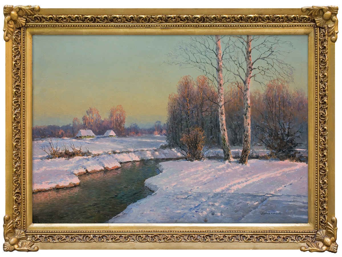 Wiktor Korecki (Kamieniec Podolski 1890 - Komorów k. Warszawy 1980) - malarz pejzażysta - gimnazjum ukończył w Kijowie, tam też studiował w Szkole Rysunkowej Aleksandra Muraszki. Po studiach wrócił do Kamieńca Podolskiego, skąd w roku 1921 wyjechał do Warszawy. Tu miał pracownię na rogu ulic Tamki i Cichej. Niestety zgromadzone tam obrazy spłonęły w czasie powstania 1944 roku. Po powstaniu artysta przebywał w obozie w Pruszkowie skąd trafił do obozu pracy w Lipsku. Do kraju powrócił w roku 1946 i zamieszkał w Komorowie pod Warszawą, a później w Milanówku. Jego nastrojowe krajobrazy emanujące spokojem i pogodą cieszyły się zawsze dużą popularnością. Korecki najczęściej malował pejzaże zimowe z motywem leśnej drogi i strumienia wijącego się wśród śniegów, a obok nich także wiosenne, letnie czy jesienne widoki z Mazowsza.