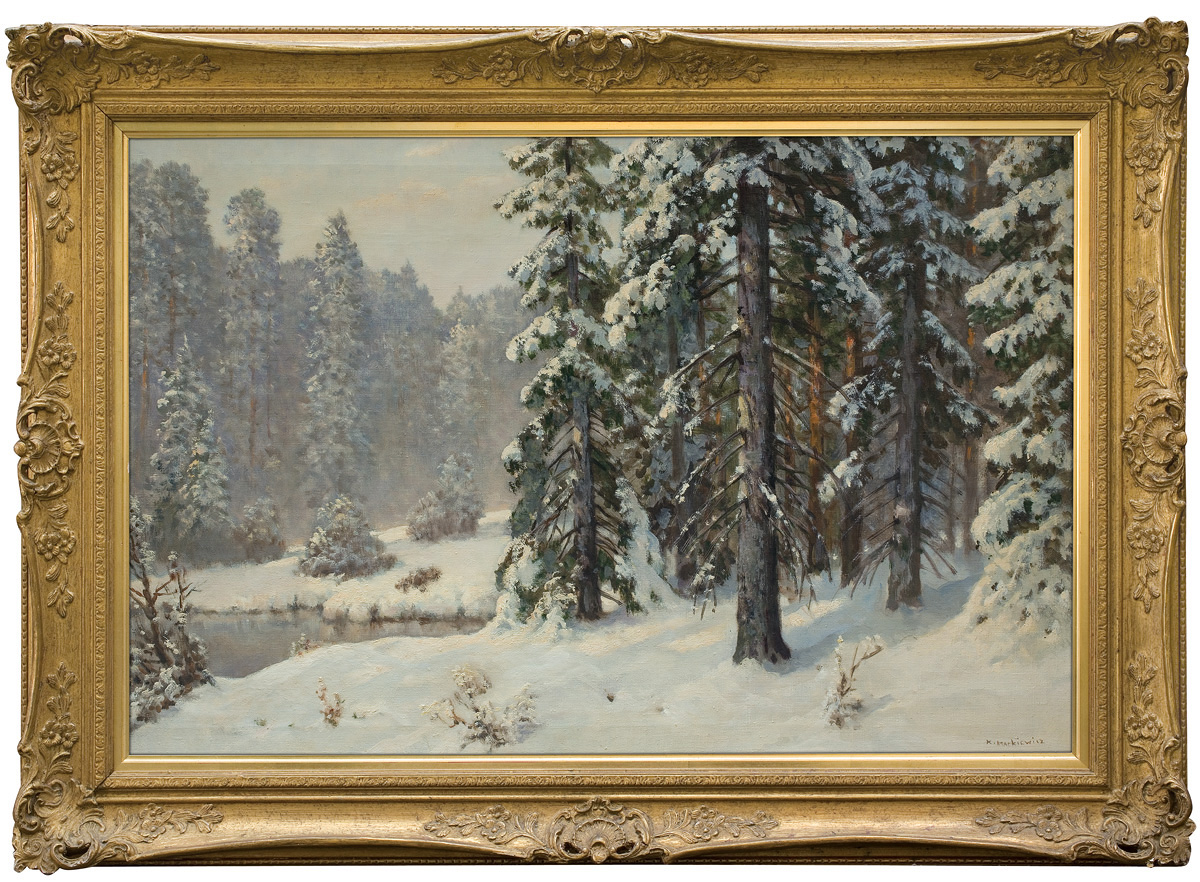 Konstanty Mackiewicz (Małoryta k. Brześcia nad Bugiem 1894 - w Łódź 1985) - malarz i scenograf teatralny; studia artystyczne rozpoczął w Odessie (1913/14), następnie kształcił się w Penzie (1914-1919), a później w pracowni Wassila Kandinsky’ego w moskiewskiej Wyższej Szkole Malarstwa, Rzeźby i Architektury. Od roku 1922 mieszkał we Lwowie, gdzie pracował jako scenograf teatralny. W roku 1926 przeniósł się na stałe do Łodzi i pracował w Teatrze Miejskim. Był członkiem ugrupowań artystycznych „Rytm” i „Start”, wiele wystawiał, m.in. w Zachęcie i w Salonach IPS-u w Warszawie oraz za granicą, m.in. w Brukseli (1933), w Paryżu (1937; dwa złote medale) i w Nowym Jorku (1939). Po II wojnie światowej nadal mieszkał w Łodzi, biorąc udział w licznych wystawach. W swojej bogatej i bardzo różnorodnej twórczości nawiązywał do założeń kubizmu, futuryzmu i koloryzmu. Malował zarówno kompozycje abstrakcyjne, jak i realistyczne pejzaże lub martwe natury. Po wojnie stworzył m.in. cykle obrazów Tu byli ludzie, Katedry, Miasto.