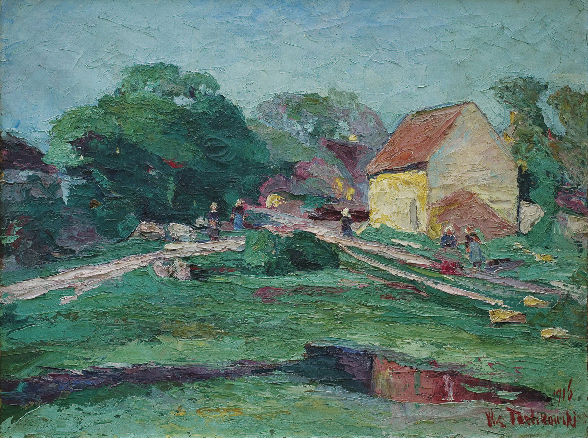 Włodzimierz Terlikowski (Poraj koło Łodzi 1873 - Paryż 1951) - malarz związany ze środowiskiem École de Paris - zasadniczo był samoukiem, chociaż przejściowo studiował w Monachium i w Paryżu. Dużo podróżował; poza Europą był w Indiach, północnej Afryce, Australii i Nowej Zelandii. Od roku 1911 stale mieszkał w Paryżu, gdzie miał kilka wystaw indywidualnych. Wystawiał też w Wenecji, w Brukseli i kilkakrotnie w Polsce. Jego obrazy wyróżniają się indywidualnym stylem malarskim - w pejzażach, martwych naturach i portretach stosował kolory żywe, nasycone i często ostro z sobą kontrastujące. Farbę nakładał szerokim pędzlem lub szpachlą, nadając obrazom bogatą i gęstą, mięsistą fakturę malarską.