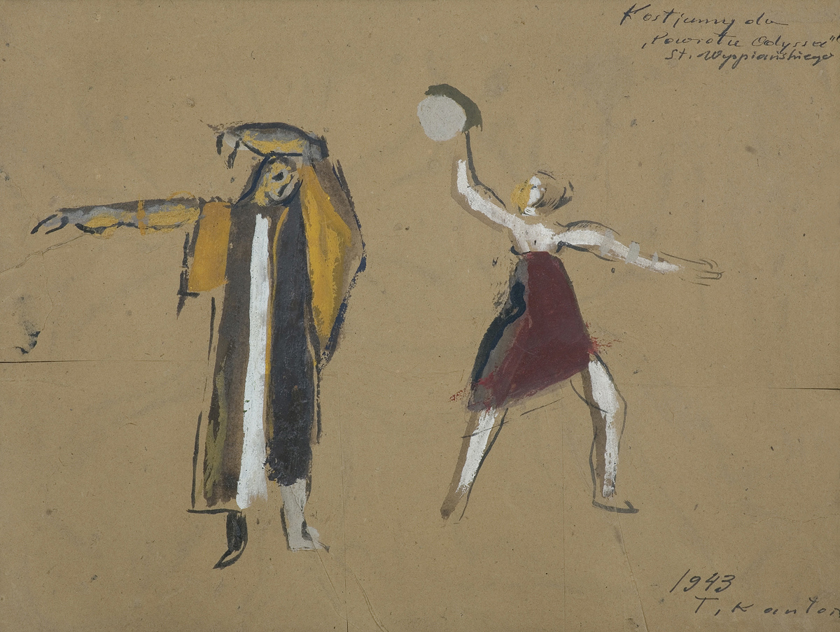 Tadeusz Kantor (Wielopole Skrzyńskie 1915 - Kraków 1990) studiował scenografię w ASP w Krakowie w latach 1934-1939. W 1942 założył Teatr Podziemny, który działał do 1944, dając dwa spektakle: "Balladynę" i "Powrót Odysa". W trakcie prac nad spektaklami zawiązało się grono artystów, którzy w 1945 utworzyli pod wodzą Kantora „Grupę Młodych Plastyków“. Ta z kolei stała się zalążkiem zarówno eksperymentalnego teatru Cricot 2 (utworzonego w 1955), jak i drugiej „Grupy Krakowskiej“ (utworzonej w 1957). W 1947 Kantor przebywał na rocznym stypendium w Paryżu, po powrocie był jednym z organizatorów I Wystawy Sztuki Nowoczesnej, Kraków 1948/49. W latach 1950-1954 nie uczestniczył w wystawach. Od 1955 jego twórczość biegła dwutorowo. Z jednej strony działał jako malarz, twórca „ambalaży“, od 1965 happeningów, z drugiej - poświęcał się pracy nad kolejnymi spektaklami Cricot 2, z których każdy był wydarzeniem artystycznym, zwłaszcza od lat 70.: "Umarła klasa" (premiera 1975), "Wielopole, Wielopole" (1980), "Niech sczezną artyści" (1985), "Nigdy tu już nie powrócę" (1988); zmarł po ostatniej próbie spektaklu "Dzisiaj są moje urodziny" (premiera 1991). Współpracował stale z galeriami: Krzysztofory w Krakowie (gdzie również miał siedzibę teatr Cricot 2) i Foksal w Warszawie. Od 1979 wraz z teatrem Cricot 2 przebywał głównie we Florencji. Był teoretykiem sztuki i teatru, autorem wielu manifestów. Uczestniczył w wystawach miedzynarodowych najwyższej rangi, jak Documenta w Kassel (1959, 1965), Biennale w Wenecji (1960), Biennale w Sao Paulo (1967). Otrzymał m.in. Prix Rembrandt Fundacji Goethego, Bazylea 1978, Medal „Arts et Lettres“ Ministra Kultury Francji 1982, nagrodę Fundacji im. Alfreda Jurzykowskiego, Nowy Jork 1982 i wiele nagród teatralnych.