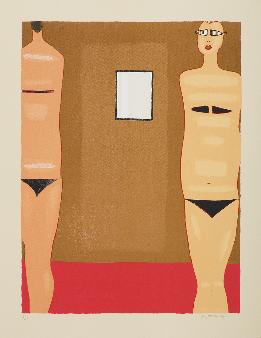 Jerzy Nowosielski (Kraków 1923 - Kraków 2011) w 1940 zaczął studia w Kunstgewerbeschule w Krakowie. W 1942 przebywał przez niecały rok w Ławrze św. Jana Chrzciciela pod Lwowem. Studiował tam sztukę malowania i historię ikon. Po powrocie do Krakowa w 1943 nawiązał ponowne kontakty z kręgiem przyszłej Grupy Krakowskiej. Po wojnie kontynuował studia w ASP w Krakowie pod kierunkiem prof. Eugeniusza Eibischa (1945-1947). Na I Wystawie Sztuki Nowoczesnej w Krakowie w 1948/49 pokazał obrazy utrzymane w nurcie abstrakcji geometrycznej. W latach socrealizmu nie wystawiał, zajmując się w tym czasie scenografią oraz malowaniem cerkwi i kościołów. W 1955 w Łodzi zaprezentował swą pierwszą wystawę indywidualną, w 1956 wziął udział w XXVIII Biennale w Wenecji. W latach 1957-1962 był pedagogiem w Państwowej Wyższej Szkole Sztuk Plastycznych w Łodzi, następnie w Akademii krakowskiej, gdzie wykładał na Wydziale Malarstwa do przejścia na emeryturę w 1993. W drugiej połowie lat 50. osiągnął charakterystyczny styl aktów, pejzaży i scen figuralnych we wnętrzach, który zawdzięczał swej fascynacji ikoną i doświadczeniom z malarstwem sakralnym. W 1976 podjął na nowo realizacje monumentalne, wykonując m.in. malowidła ścienne, stacje Drogi Krzyżowej i projekty witraży w kościele Opatrzności Bożej w Wesołej pod Warszawą (1976-1979). Artysta powszechnie uznawany był za autorytet w dziedzinie sztuki zakorzenionej w wartościach duchowych.