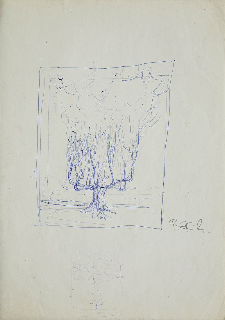 sygn. oł. p.d.: BEKsiński, na osi u dołu szkic innej kompozycji