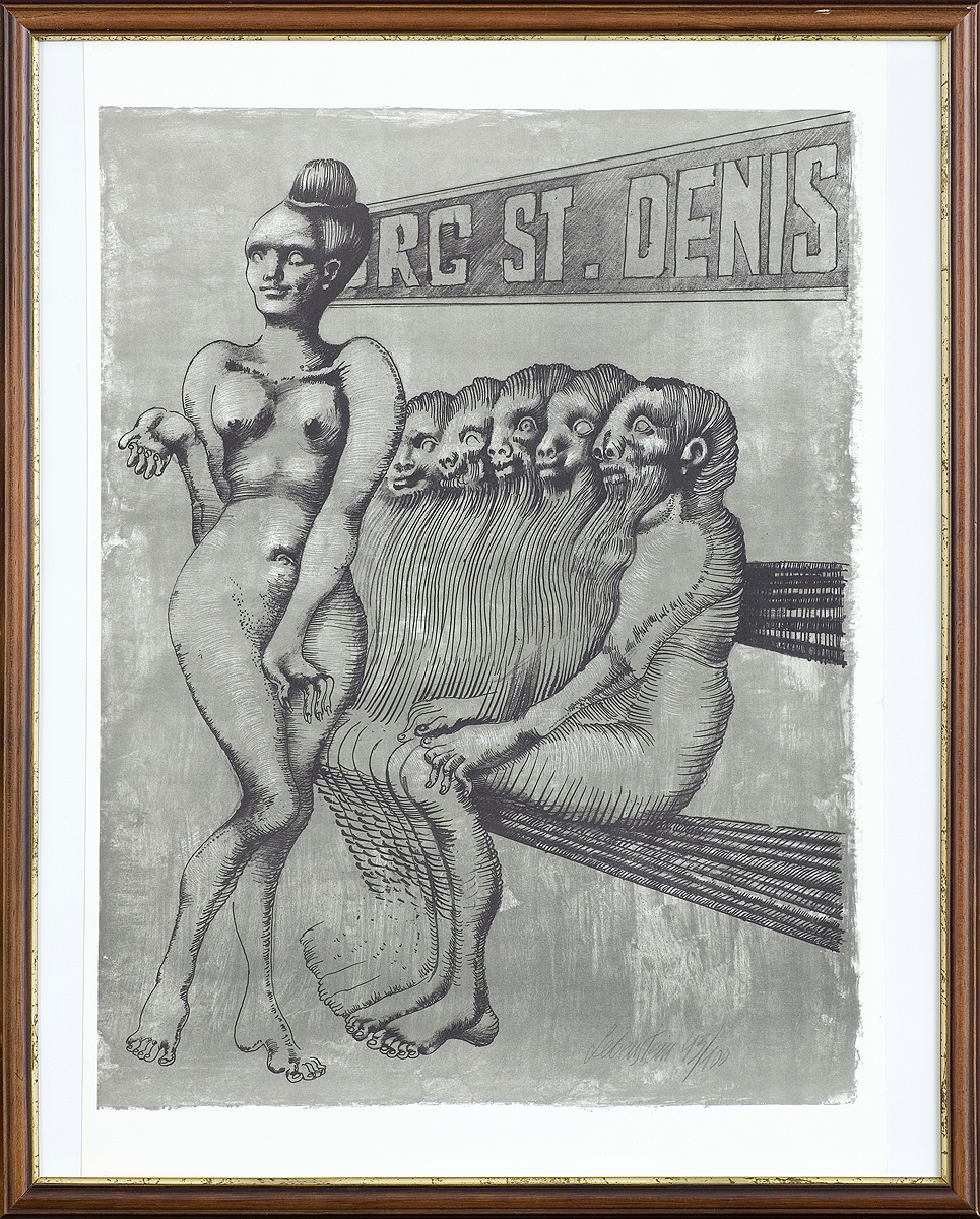 Jan Lebenstein (Brześć Litewski 1930 - Kraków 1999) w latach 1948-1954 studiował malarstwo w ASP w Warszawie pod kierunkiem prof. Eugeniusza Eibischa i Artura Nachta-Samborskiego. W 1955 wziął udział w wystawie w warszawskim Arsenale. Zaprzyjaźniony w czasie studiów z Mironem Białoszewskim, swą pierwszą wystawę indywidualną pokazał w 1956 w Teatrze na Tarczyńskiej. W 1959 zdobył Grand Prix de la Ville de Paris na I Biennale Młodych w Paryżu i w tym roku przeniósł się na stałe do Paryża. Po seriach "figur kreślonych" (na papierze milimetrowym) i "figur hieratycznych" z lat 1955-1958 maluje cykl "figur osiowych" (1958-1962), które wystawia w Paryżu i USA. Równolegle w 1960 zaczyna rysowane "karnety", rodzaj dziennika, który w przyszłości dostarczy motywów wykorzystanych w obrazach. W latach 1964-1965 maluje "Bestiarium", cykl fakturowych, archaizowanych stworów przypominających prehistoryczne wykopaliska. Bezpośrednio po nich wprowadza do swych obrazów postaci ludzkie i fantastyczne, odgrywające sceny ni to mitologiczne, ni to ze snu, często przesycone erotyką. W 1970 projektuje witraże dla Centre du Dialogue w Paryżu. W W 1971 otrzymuje obywatelstwo francuskie 1974 powstają gwasze inspirowane Folwarkiem zwierzęcym George'a Orwella. W latach 1976-1989 tworzy wyłącznie w technice gwaszu i pastelu, podejmując tematykę mitologiczną i zaczerpniętą z Biblii: cykle ilustracji do Księgi Hioba (wyd. 1979) i do Apokalipsy (wyd. 1986) w nowych przekładach Czesława Miłosza. W 1989 powraca do malarstwa olejnego (cykl "Pergamon"). Artysta otrzymał m. in. nagrodę Fundacji im. Alfreda Jurzykowskiego w 1976, Nagrodę Muzeum Archidiecezji Warszawskiej w 1985, Nagrodę im. Jana Cybisa w 1987.
