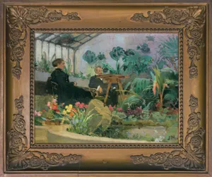 Portret dr Bolesława Skórczewskiego i jego żony Sabiny w oranżerii ich Zakładu Dietetycznego w Krynicy