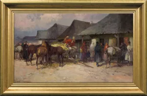 Adam Setkowicz (Kraków 1876 - Kraków 1945) to popularny malarz scen rodzajowych z zaprzęgami, polowaniami, saniami i śniegami, malowanych akwarelą bądź olejno, w których wyraźnie nawiązywał do prac A. Wierusza-Kowalskiego, J. Brandta czy też J. Fałata. O życiu artysty wiadomo jednak niewiele poza tym, że w latach 1891-1894 kształcił się w krakowskiej Szkole Sztuk Pięknych, gdzie w 1897/1898 kontynuował studia pod kierunkiem Teodora Axentowicza. W 1933 wziął udział w wystawie w Piotrkowie Trybunalskim.