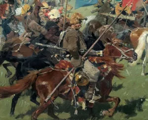 Obraz znany po d tytułami: POWRÓT ZWYCIĘZCÓW. PO ZWYCIĘSTWIE. POCHÓD KOZAKÓW